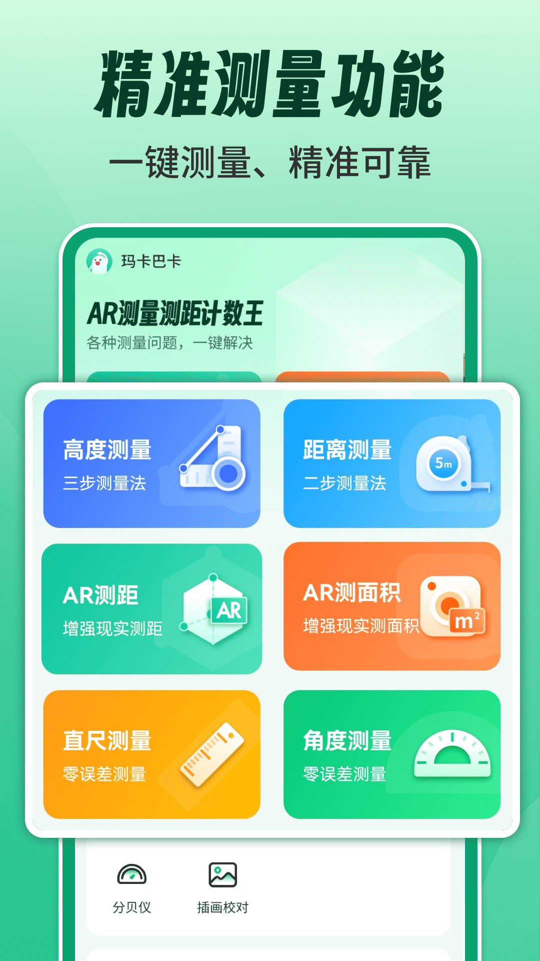 一款精准的高度角度距离精准测量软件。多功能尺子测量具备:尺子、量角器、指南针、水平仪等功能,即可以测量身高、测量物体高度建筑高度、测量距离、测量角度、水平测量、长度测量,又能在日常生活中随时随地掏出钱手机就能进行物体的测量,显示角度,无论室内外都可测量,尤其适合木工、建筑工人使用,是居家必备尺子测量测距工具箱。