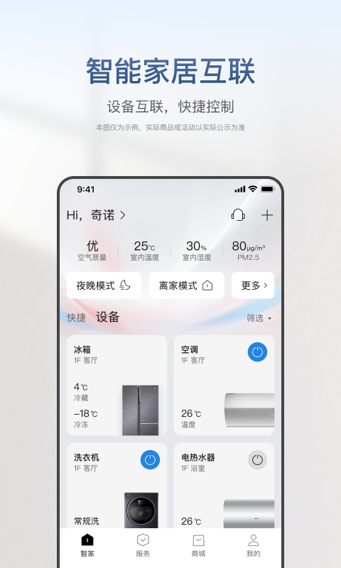 另外,智家会员还可享受专属权益,有海量积分礼品,并且能参与更多好玩有趣的活动。从安装调试到维护保养,您都能享受到五星级服务。海尔官方商城也为您带来便捷的购物新体验,从智能家电到家居生态,都能畅享一站式购物。海尔智家APP全力帮您达成高品质的智慧生活,让您尽情享受智能、便捷、舒适的智能家居新体验,开启美好生活的崭新篇章。