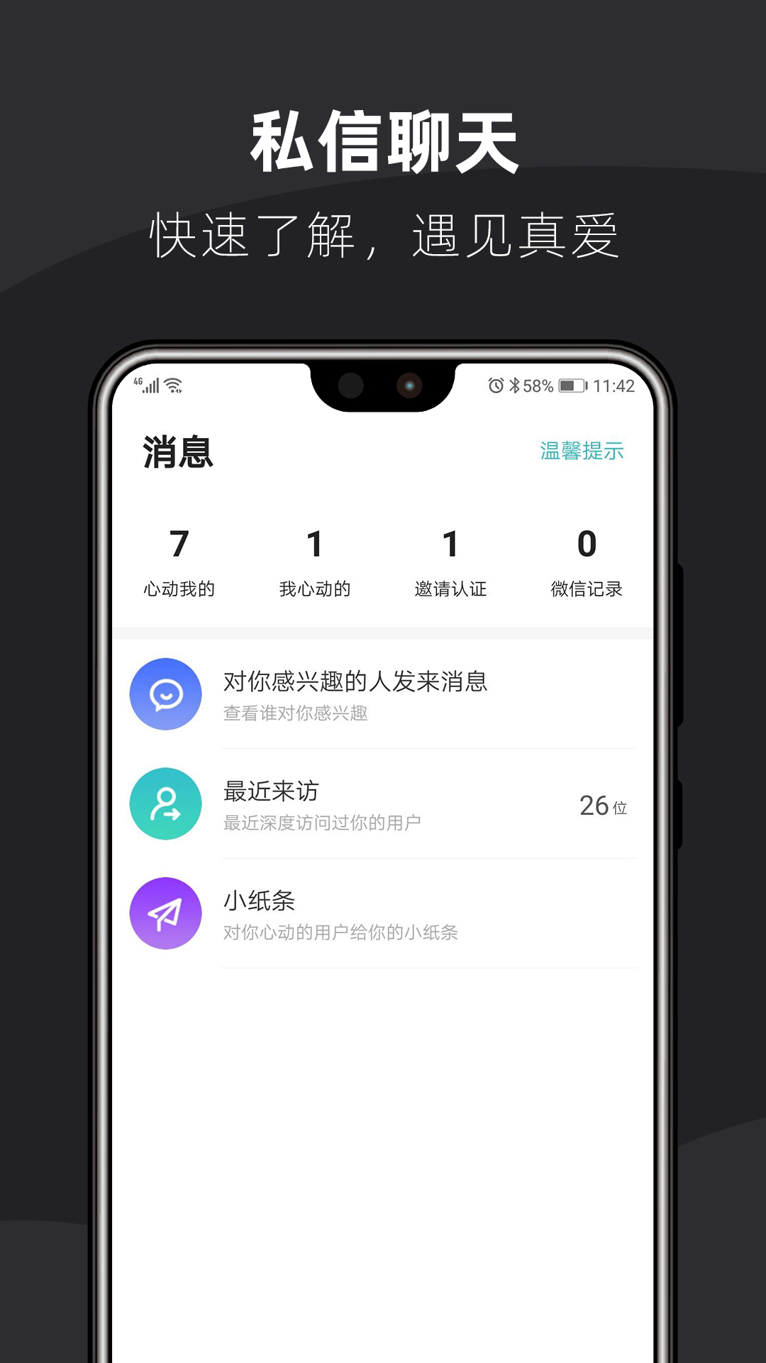 【海量推荐】每天都有大量的好友可供你选择,随时都能让你找到心仪的异性。