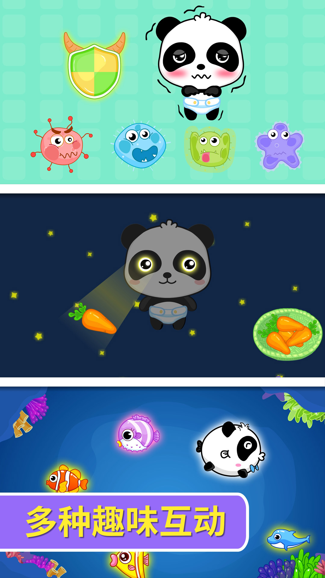 来喂小熊猫吃饭吧,还能观察它的反应呢。这里有好多趣味互动等着宝宝来体验!宝宝在这些趣味互动的过程中,就能轻松了解各种食物的好处,慢慢改掉挑食偏食的坏习惯,成为一个爱吃饭的乖宝宝。
