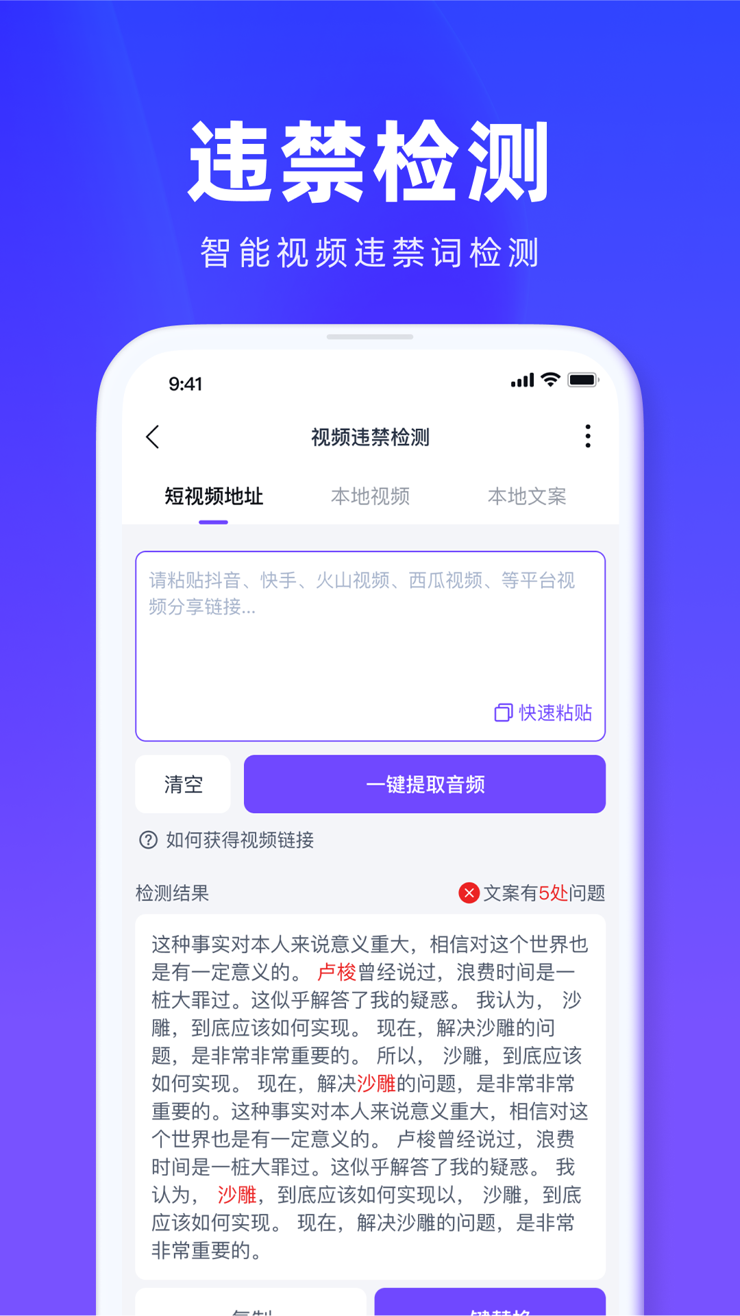 爱疯抖营短视频工具具备诸多实用功能,像是视频去水印、视频解析、视频下载、视频转音频、视频转文字、音频转文字、违禁词检测、文案提取、视频MD5值转换以及数据直达等功能一应俱全。