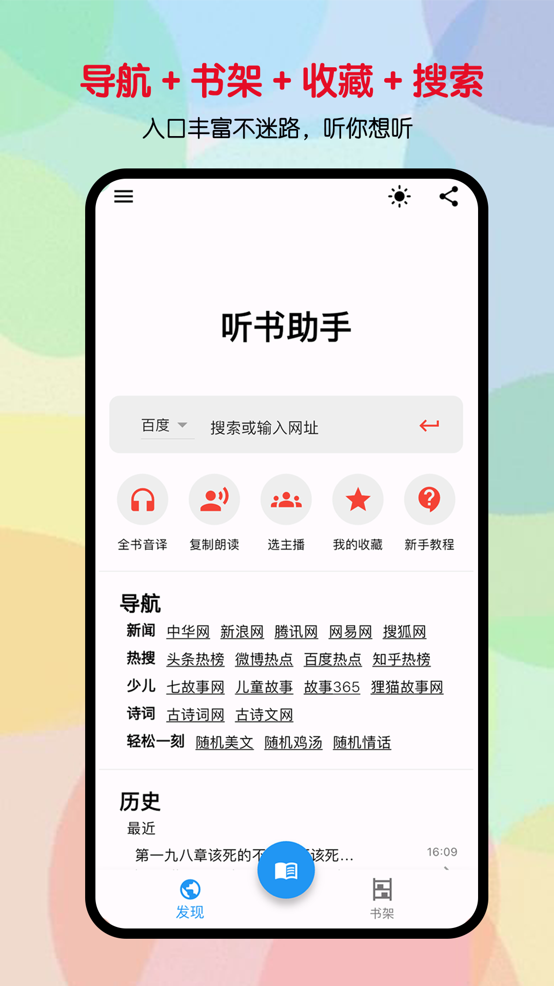 【一键收听】:站外搜索内容,站内一键收听,不管是小说、新闻通讯还是文章,随时随地,听你想听。