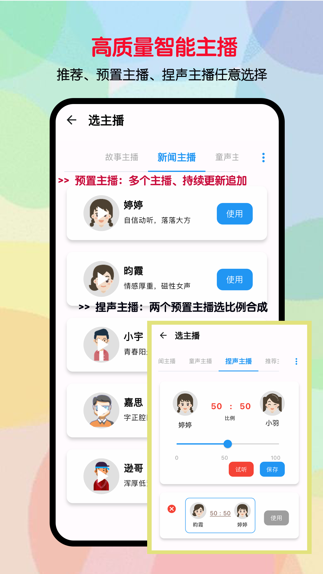 预置多个AI智能主播声音,你想听的生动声音都有,打造极简听书工具。