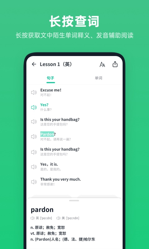 - 可以长按文中单词,快速查询单词辅助阅读。