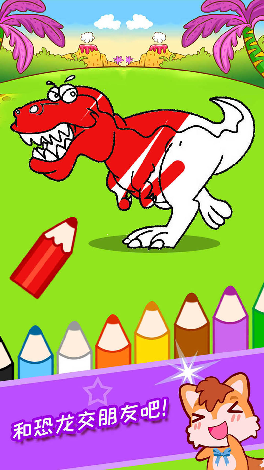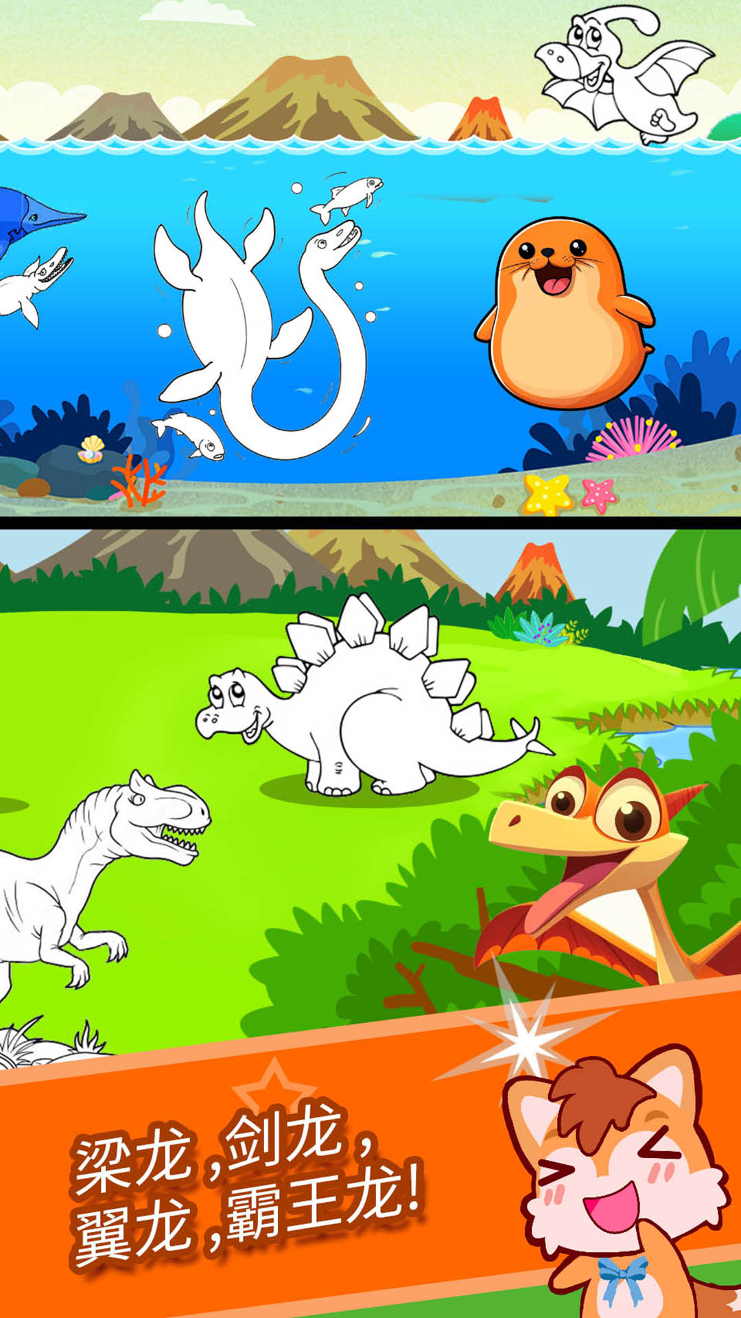 恐龙世界涂色绘画,宝宝画画启蒙