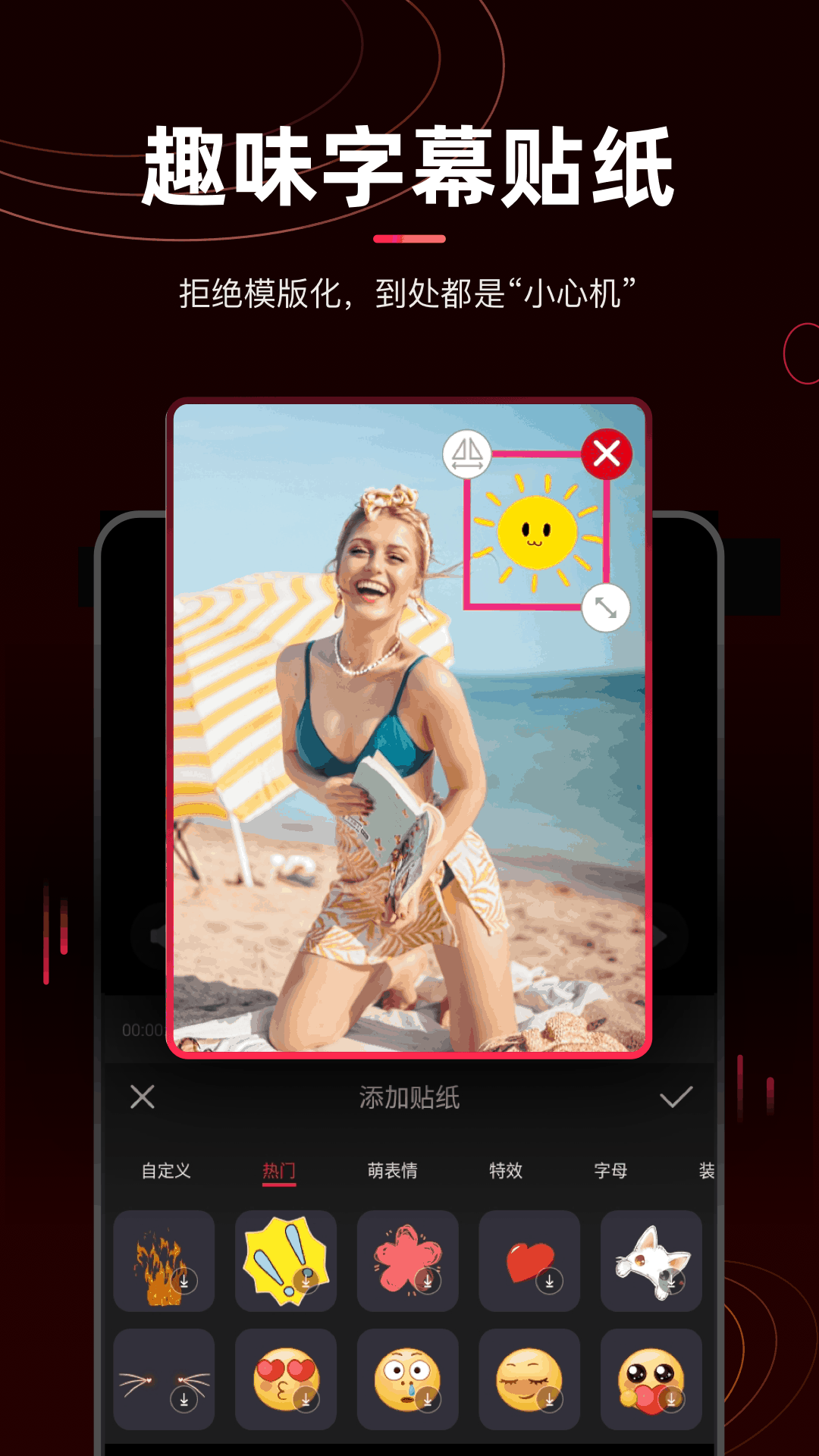 - 时尚贴纸:萌表情、特效、字母等多种时尚贴纸,任君选用。