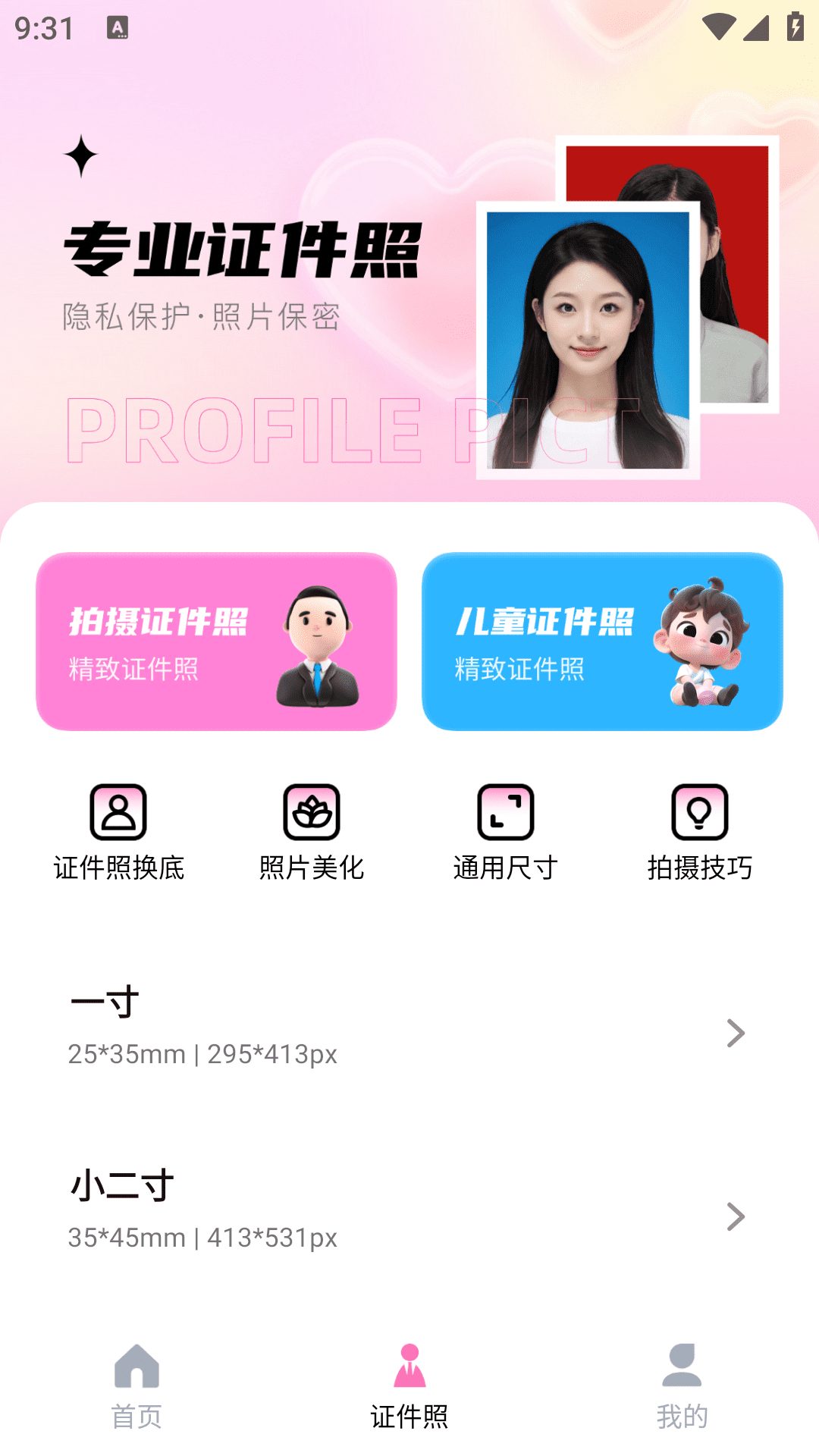 而证件照制作功能更是专业,这里提供多种规格供用户随心选择,并且还有一键美颜换装功能,用户即便在家中,也能够轻松拍出符合要求的合格证件照。