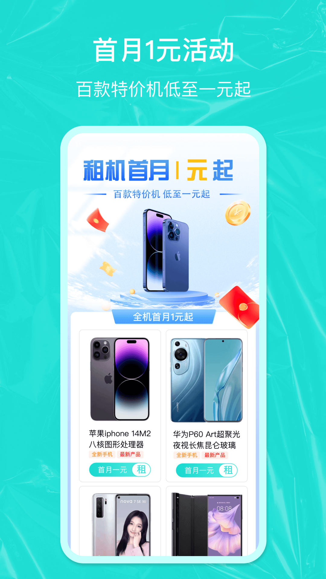 首月1元租新手机,小白即可租 【全租机】 租手机、租电脑、租平板就上全租机APP,全新国行商品,品类全、货源充足、发货快、租后服务好。 【功能】 免押金:高信用免押,即可享受0押金。 首租一元:免押金同时,有机会享受收月租1元。 【服务】 租赁服务:包含手机、电脑、相机、无人机等商品,低价使用全新科技设备。 租赁方面:租完归还、买断服务、续租、租完即送。