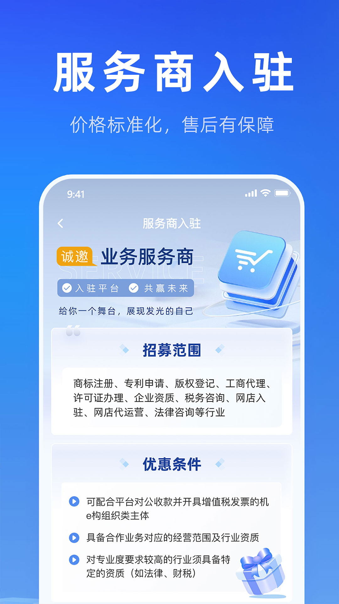 一件起购:商标注册270元,版权登记19.9元,软著申请99元,代理记账899,工商注册299元,logo设计12.9元......超多资源等你来享!
