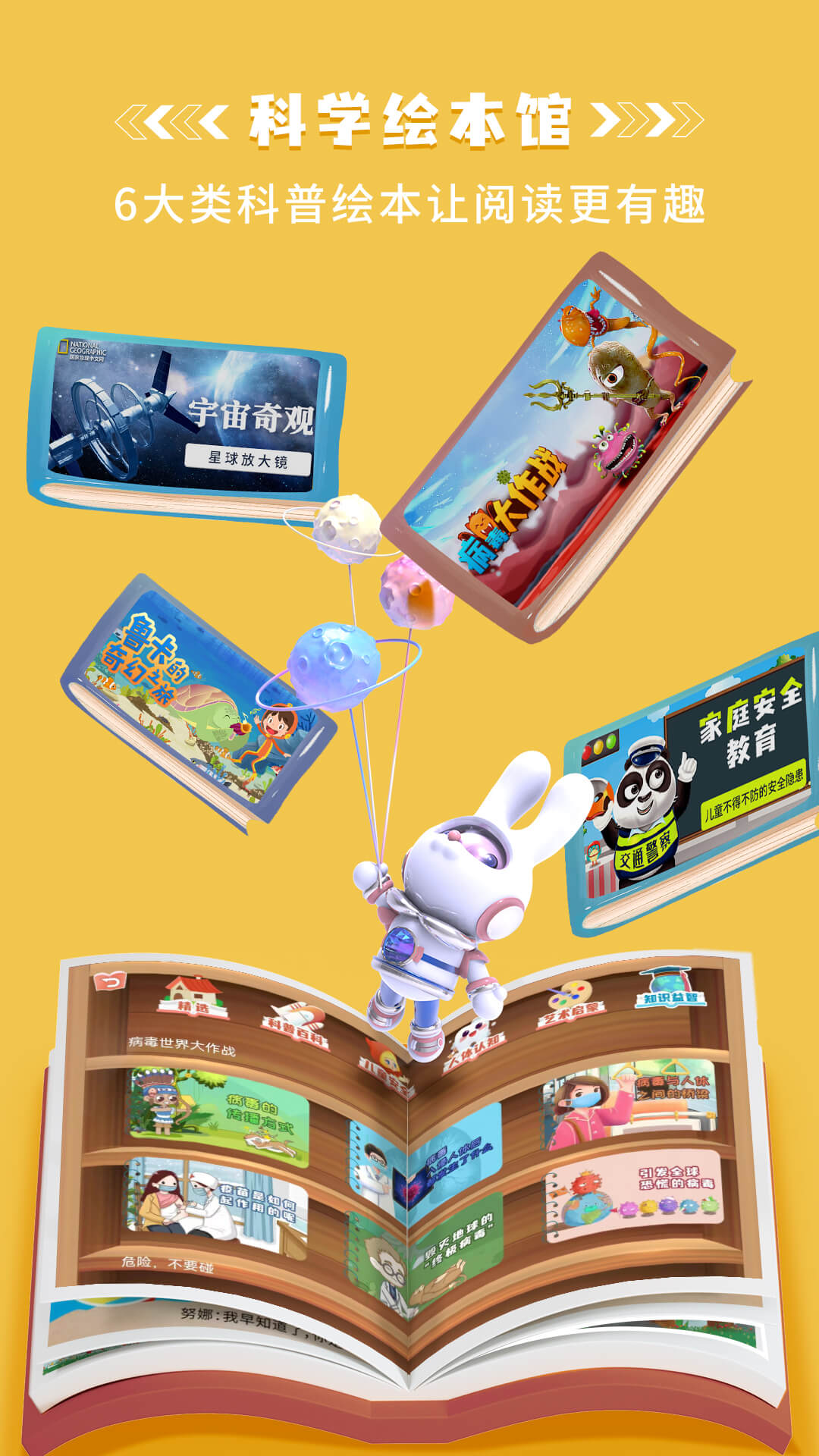 这里有海量的科普内容,并且会持续更新哦。它具备丰富的知识模块:按照小朋友喜爱的儿童科普类别进行分类,涵盖动物、恐龙、海洋、汽车、太空、国家地理、知识、地球、科学绘本馆、科学声音馆、AI互动答题课程以及AR视觉交互百科欢乐谷(其中科学绘本馆和科学音频馆也包含在内)。