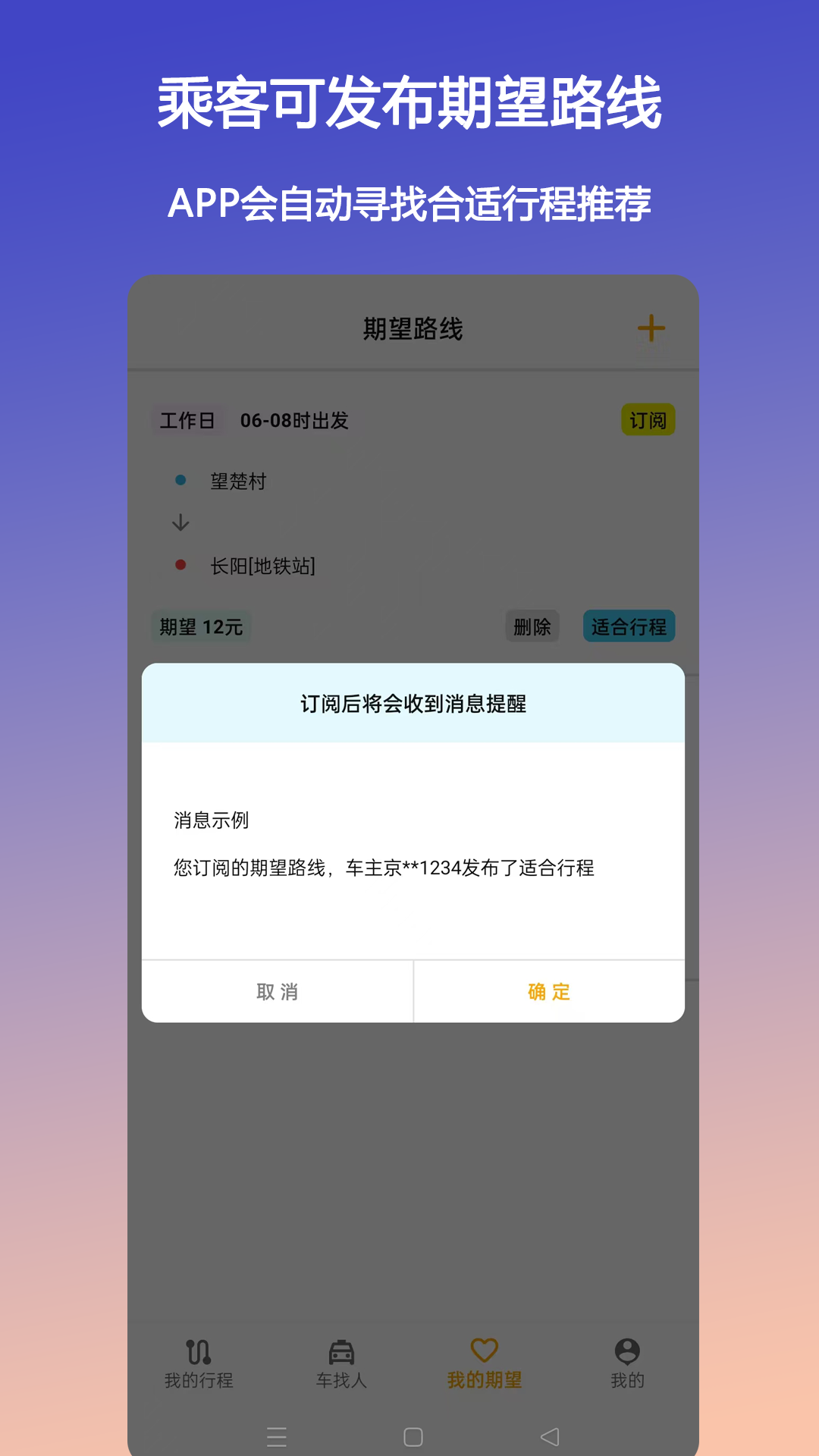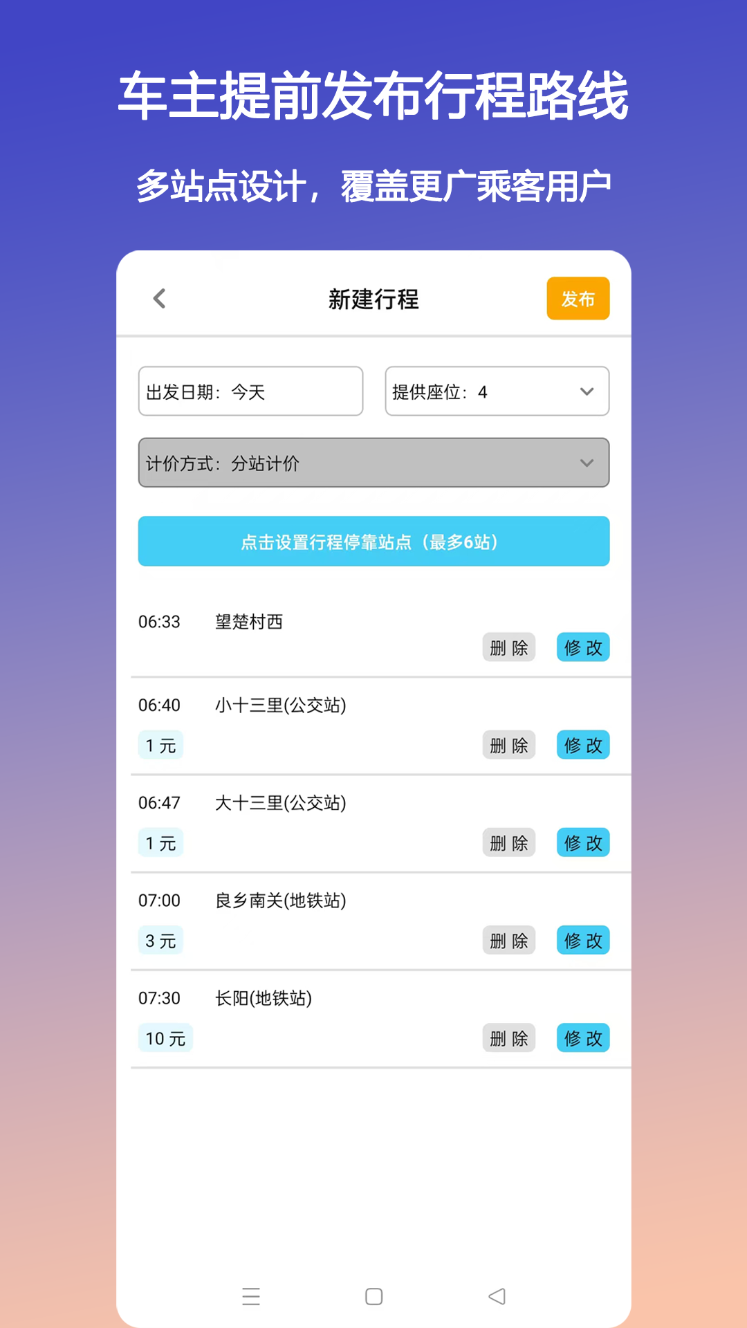 班小车 是车主提前发布未来出行行程,乘客按需加入行程后一同出行的拼车软件。