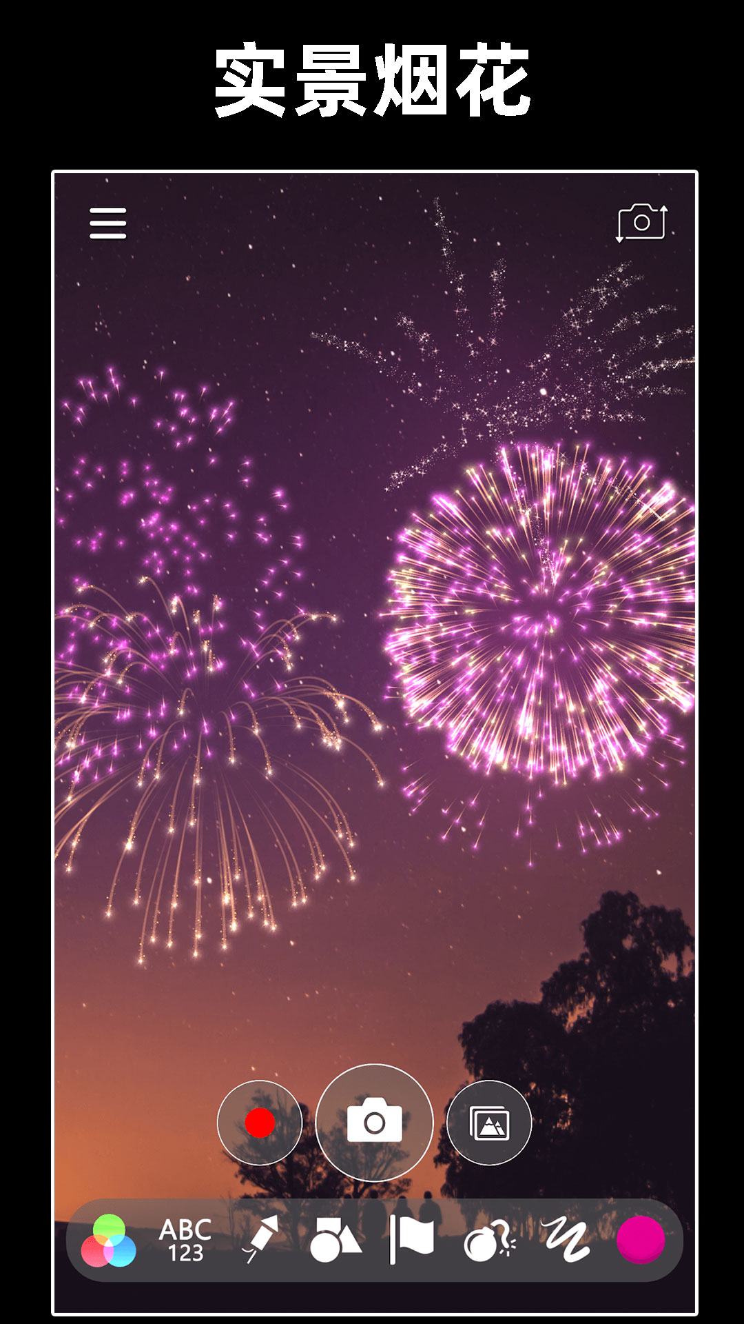 浪漫烟花模拟器是一款实景烟花模拟器,可以用于拍摄有烟花特效的视频或者照片,使您在应用中体验逼真惊艳的烟花爆炸炫彩效果,通过创建您自己的美丽烟花表演或特效来向您的朋友和家人分享喜悦。 应用中内置了字母烟花、数字烟花、形状烟花和特效烟花。 您可以使用这些烟花拼出祝福语句并录制视频分享给您的亲人;比如 HAPPY NEW YEAR! 您也可以使用这些烟花拼出表白话并录制视频,送给您的女朋友!比如 I LOVE YOU SO MUCH! 如果您善于探索发现,我们还内置了各种其他特效,如月球,火,雨,雪,闪电等等。 如果您喜欢我们的应用,记得分享给您的朋友哦!