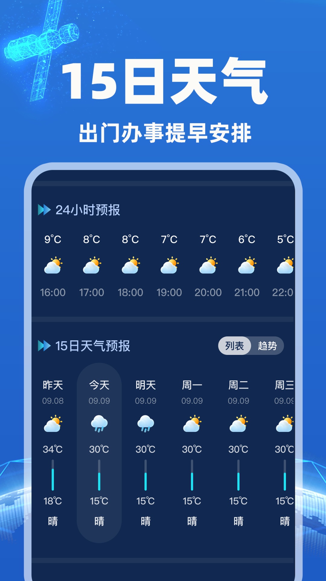 应用提供未来15天的详细天气预报,包括每天的温度、湿度、风速、降水概率等关键指标。这项功能使用户能够提前规划日常生活和出行,应对可能的天气变化。