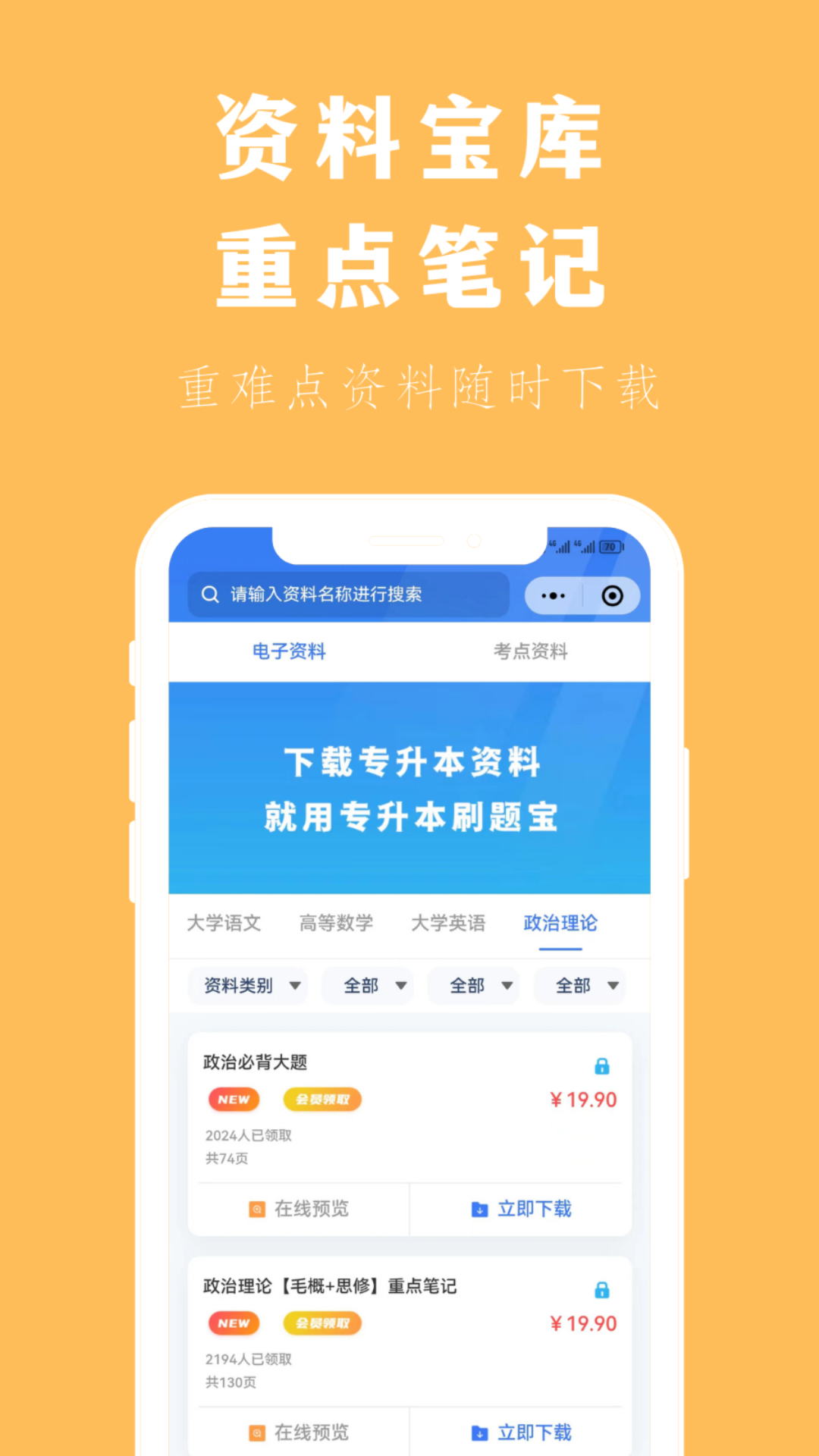 全国统招专升本考试的刷题神器来啦!专升本刷题宝已更新30多个省份的专升本题库与资料,是30万余位上岸师兄师姐力荐的专升本考试刷题工具哦!这里面历年真题、章节练习、模拟试卷、考前押题应有尽有,重点笔记还能直接下载打印,随时随地刷题,助力您节省复习时间,提高上岸的可能性!