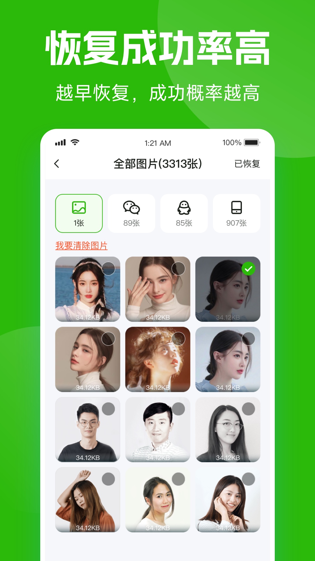 - 在图片照片恢复方面,能够恢复手机照片,包括误删的手机照片和图片数据。