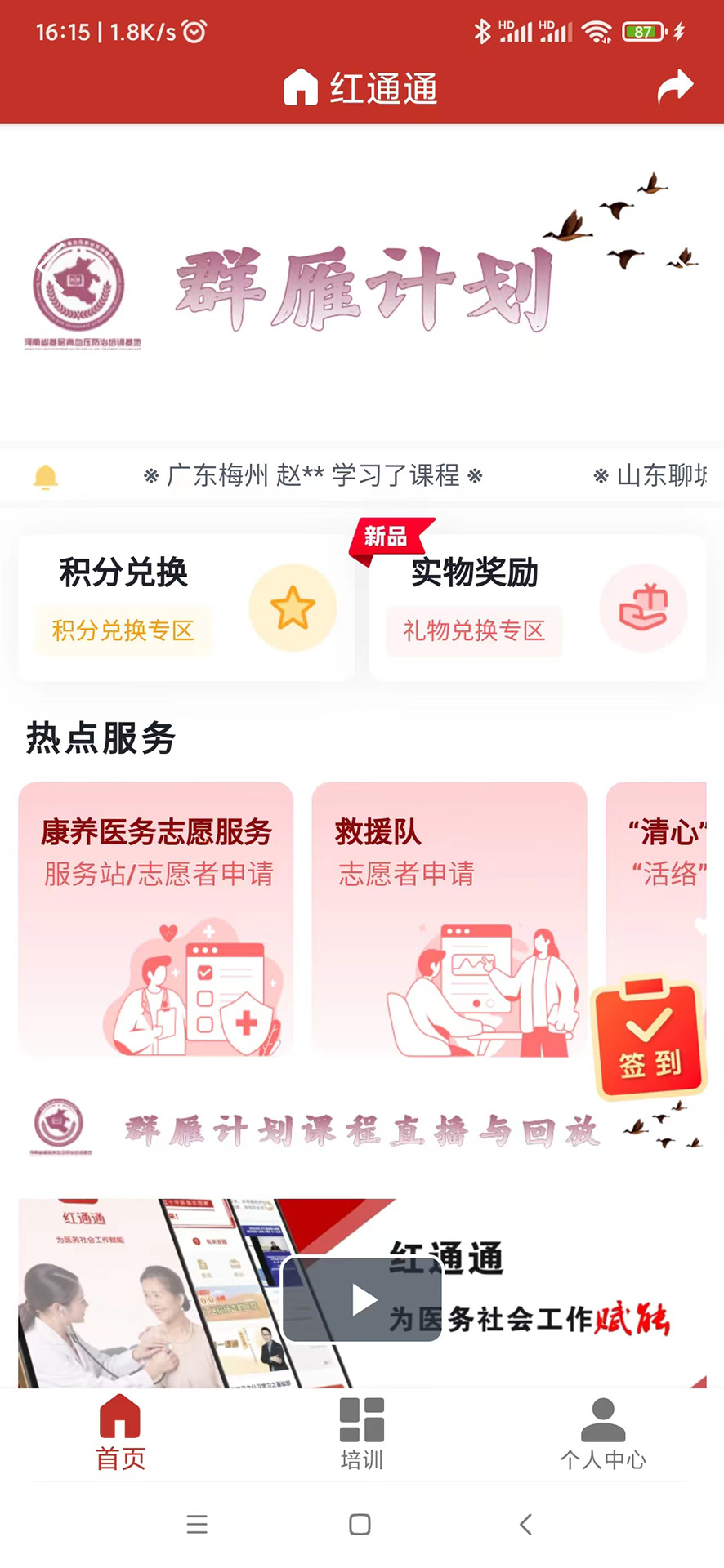 它是与中国红十字基金会联合打造的一个平台。这个平台能够为基层卫生工作者提供在线学习新技能的机会,基层卫生工作者还能在此平台与专家进行在线交流。在这个平台学习,不但能够获取知识,而且可以获得积分,这些积分能够用来兑换各类物品。