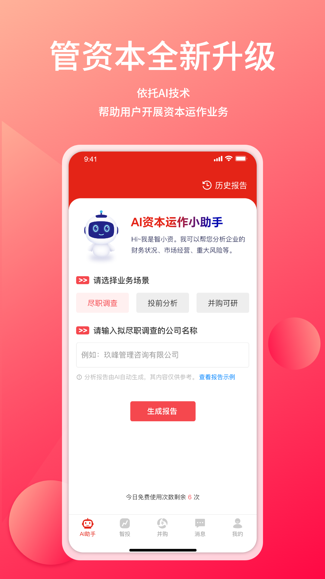 1. 凭借AI技术,为用户开展资本运作业务提供支持。