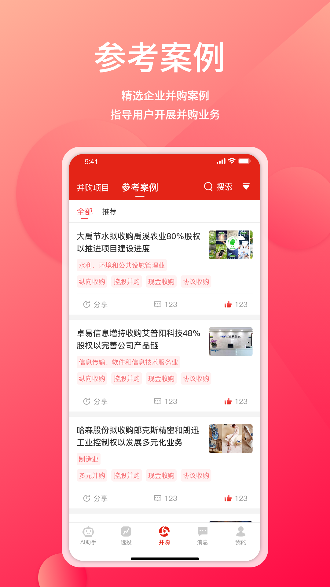 4. 精选众多企业并购案例,引导用户开展并购业务。