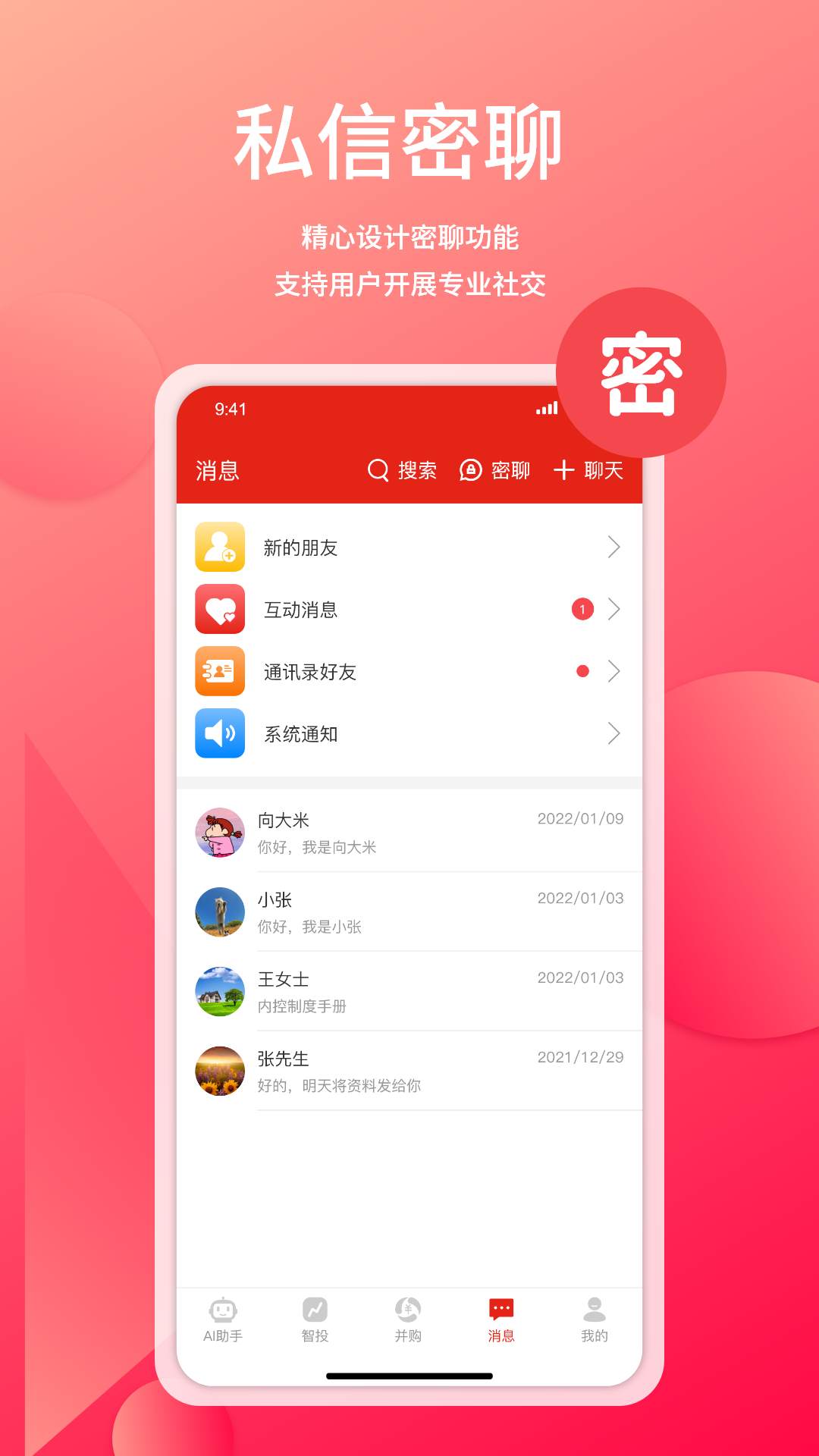 5. 巧妙设计密聊功能,助力用户开展专业社交活动。