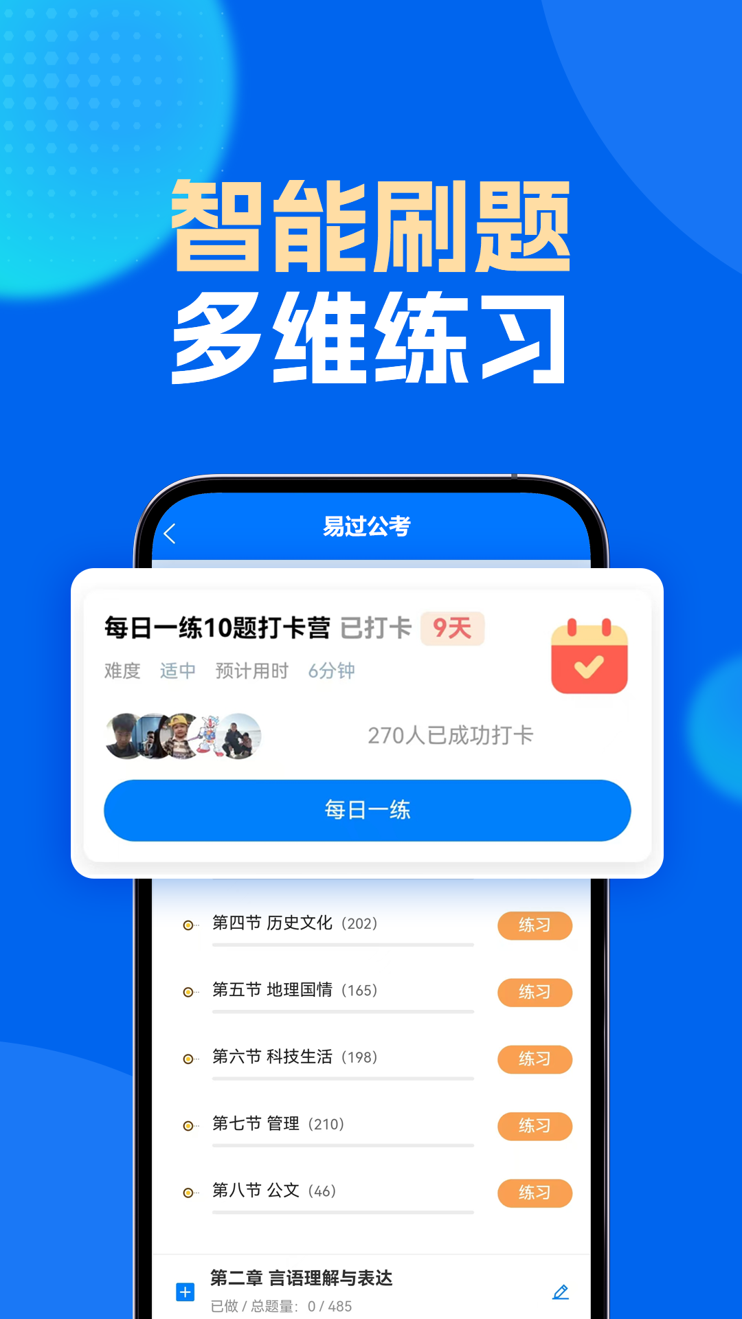 易过公考是一款专为公务员考试、国考、省考及事业单位招聘考试考生量身打造的在线学习平台。我们致力于提供全面、系统、精准的考试题库和学习资源,帮助考生高效备考,轻松过关。
