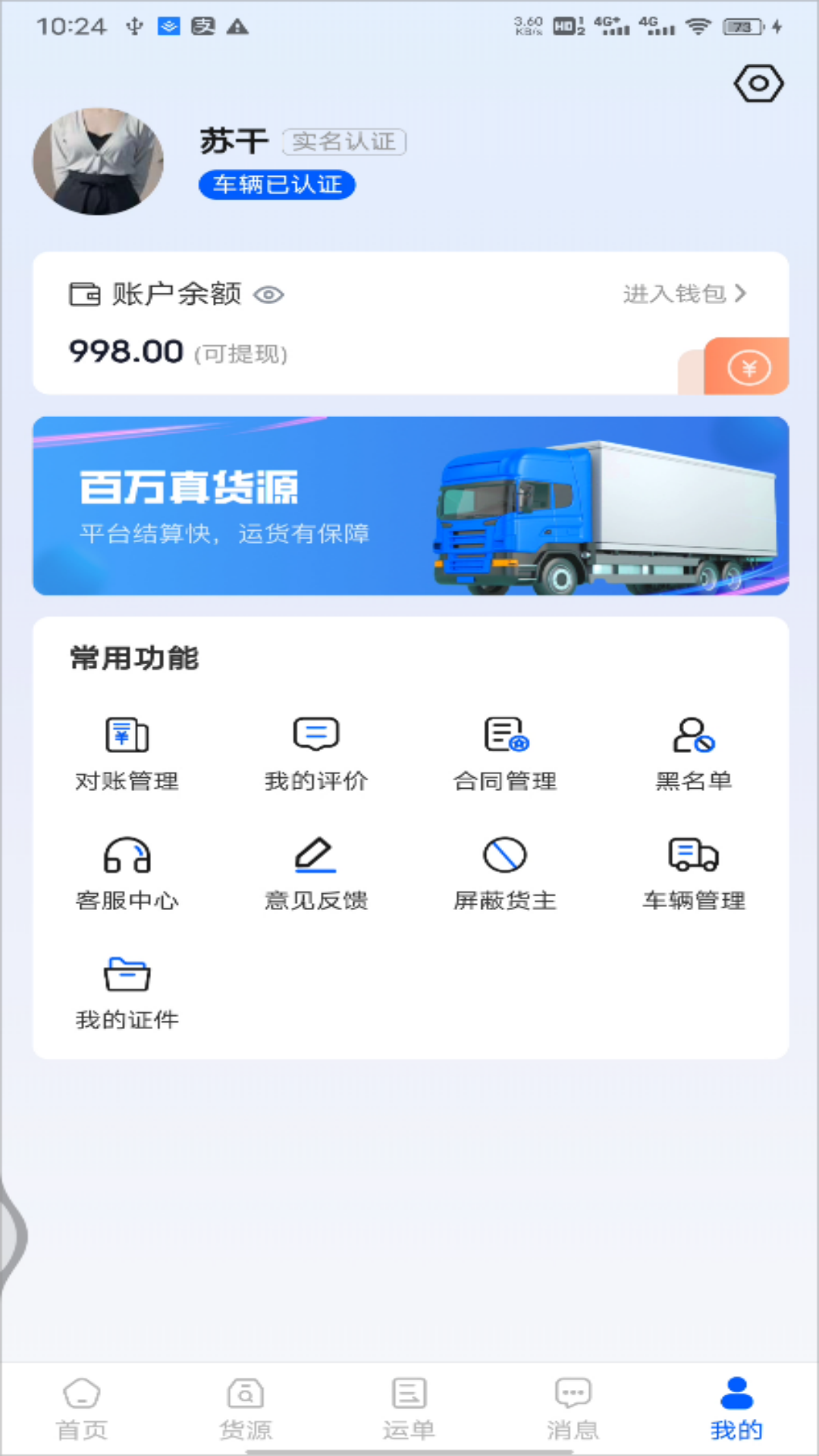 我的模块为司机量身打造,提供钱包、对账、评价、合同等一系列全方位服务,还有车辆管理、客服中心等定制化功能,让您的每一次使用都能获得个性化体验,更加满意。