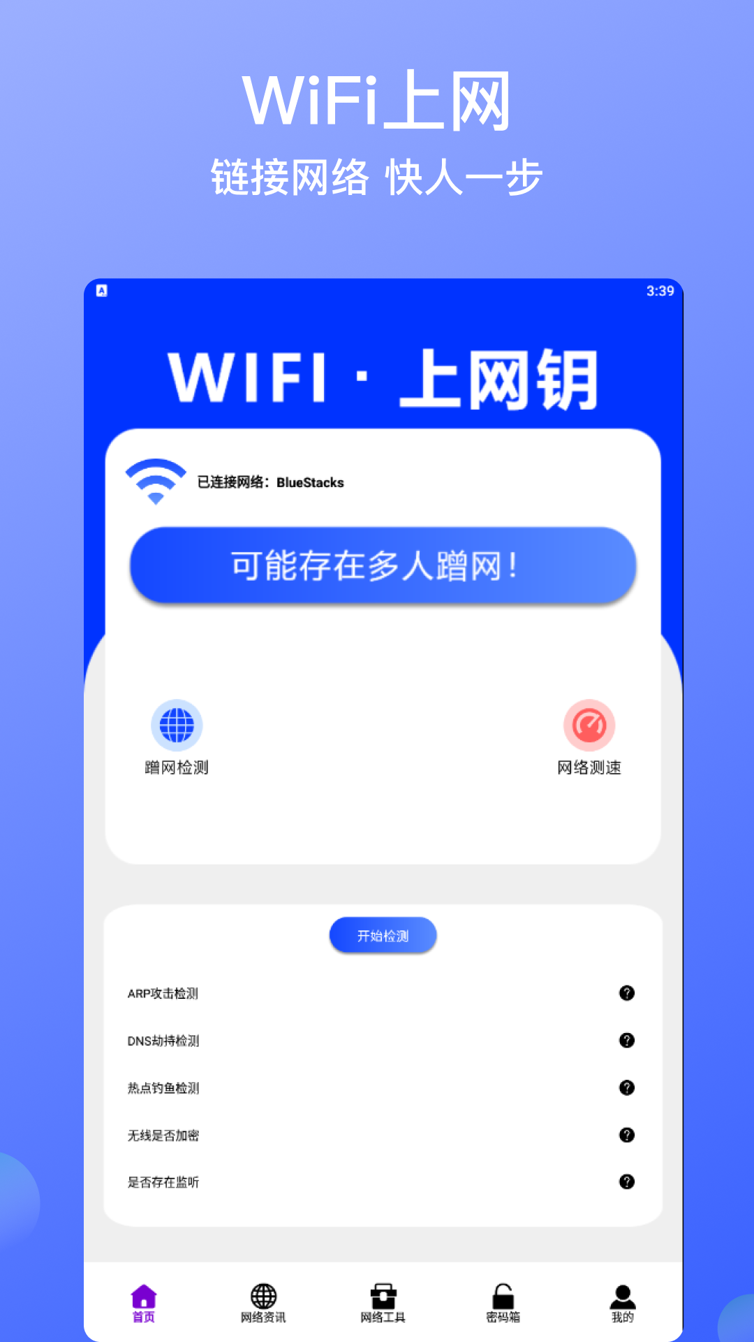 WiFi钥匙锁是一款功能实用且多样的工具箱。它能够为用户提供多种实用功能,像网络测速功能,可以快速检测网络速度;IP查询功能,方便用户查询相关IP信息;端口扫描功能,有助于对端口进行检测;还有网络安全查看功能,可让用户了解网络的安全状况等。整个操作过程简单便捷,我们期待您前来体验。