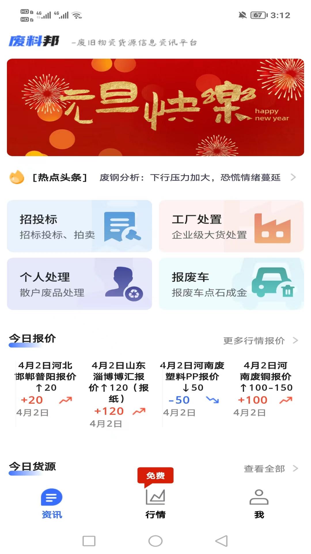 废料邦是一个精心为废品回收行业人士打造的信息服务平台。这个软件的目标是提供详尽、精确的报价信息以及货源资讯,助力废品回收行业的从业者更为精准地把握市场动态,完善回收流程,达成更高效益、更多盈利的废品回收业务。