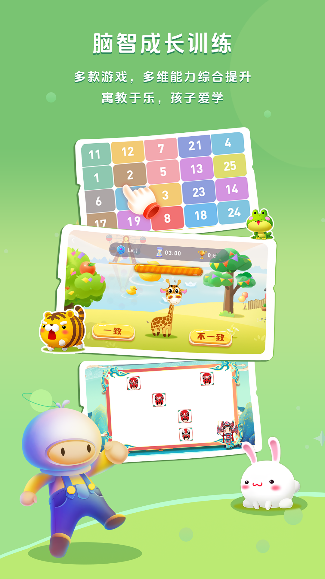 依靠经典的心理学实验范式,配以科学的训练方法,融入独特的人机互动模式,让孩子在充满趣味的游戏里提升专注力。这里精心挑选了多款针对注意力、记忆力、执行功能的游戏,通过多层次多维度的阶梯式训练,孩子能够轻松且高效地提升自己,尽情享受充满成就感的体验。