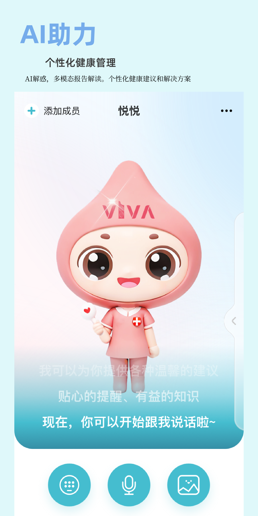 悦尔提供千人千面的服务,为用户匹配专属的私享定制化服务,并且具备多模态AI交互能力,提供多元的健康服务。