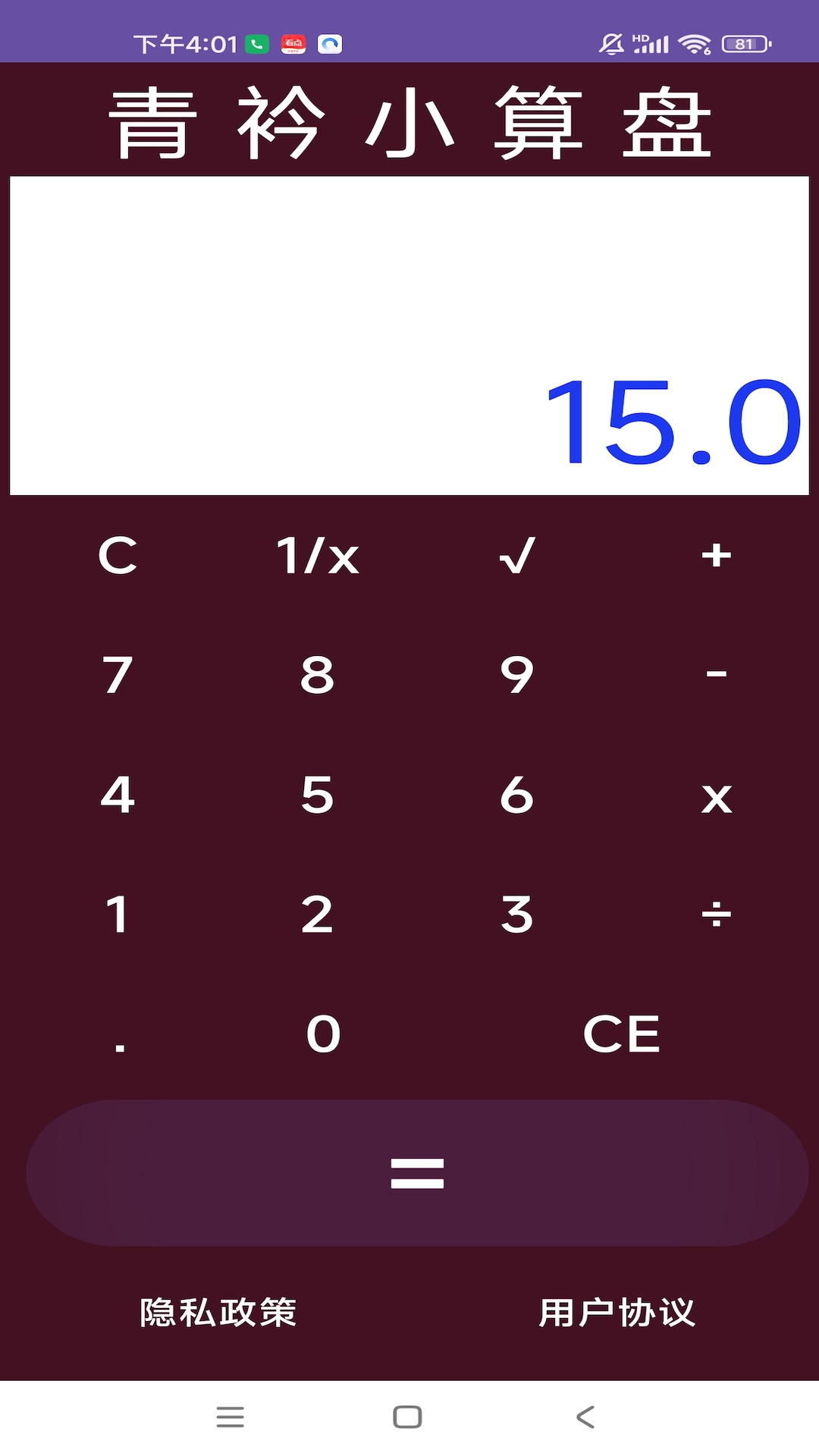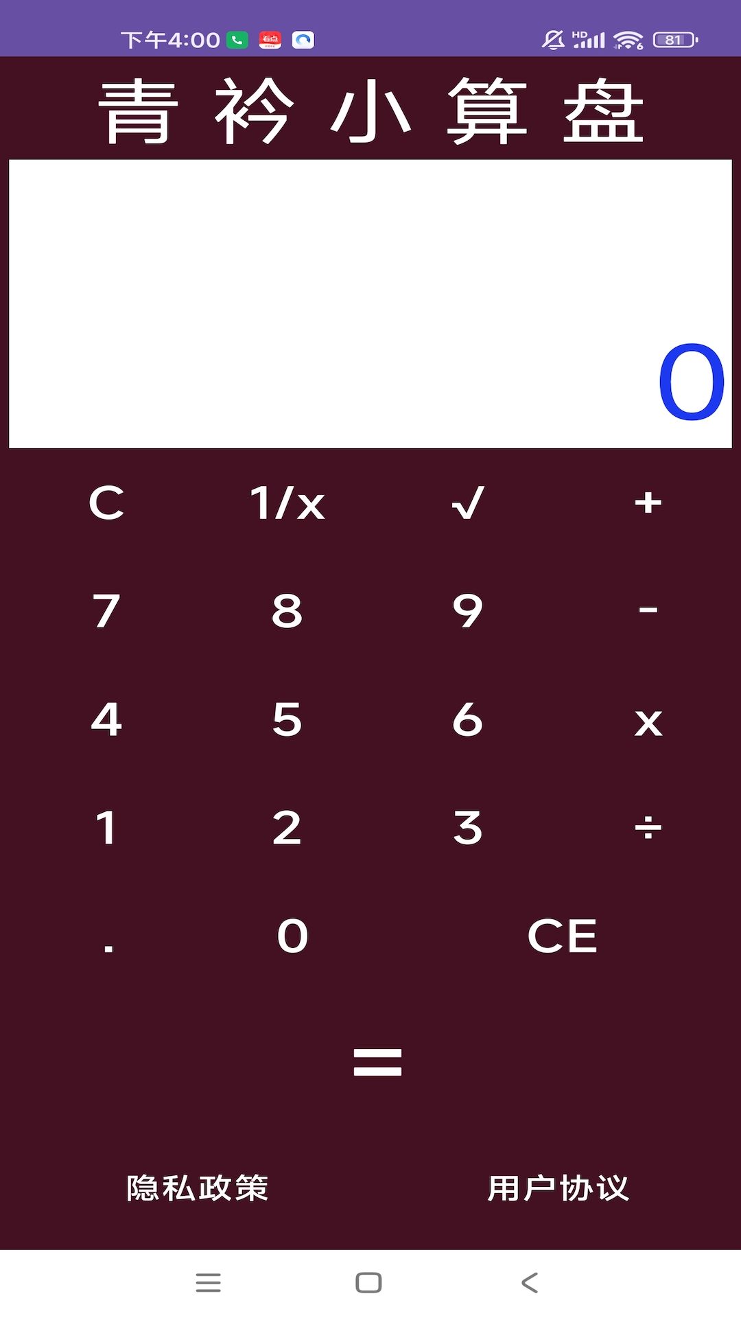 青衿小算盘是我司独立开发的一款工具类软件,而且是首款免费的此类软件。其界面设计简约直观,色调深沉。当进入软件后,数字呈现清晰明了,并且字号较大,这一设计极大地方便了用户使用。