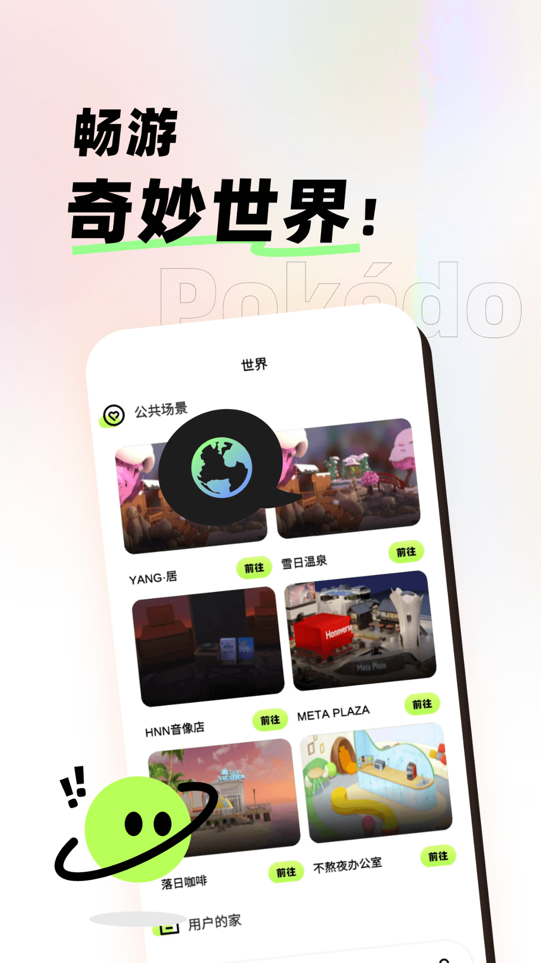 这里有丰富多彩的【世界】可供体验,各种各样的虚拟场景任你畅游。你可以与朋友们一同在这个虚拟世界里谈天说地,举办欢乐的派对呢。