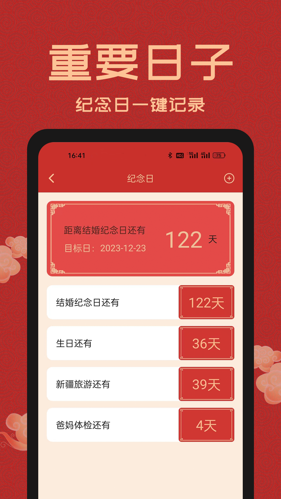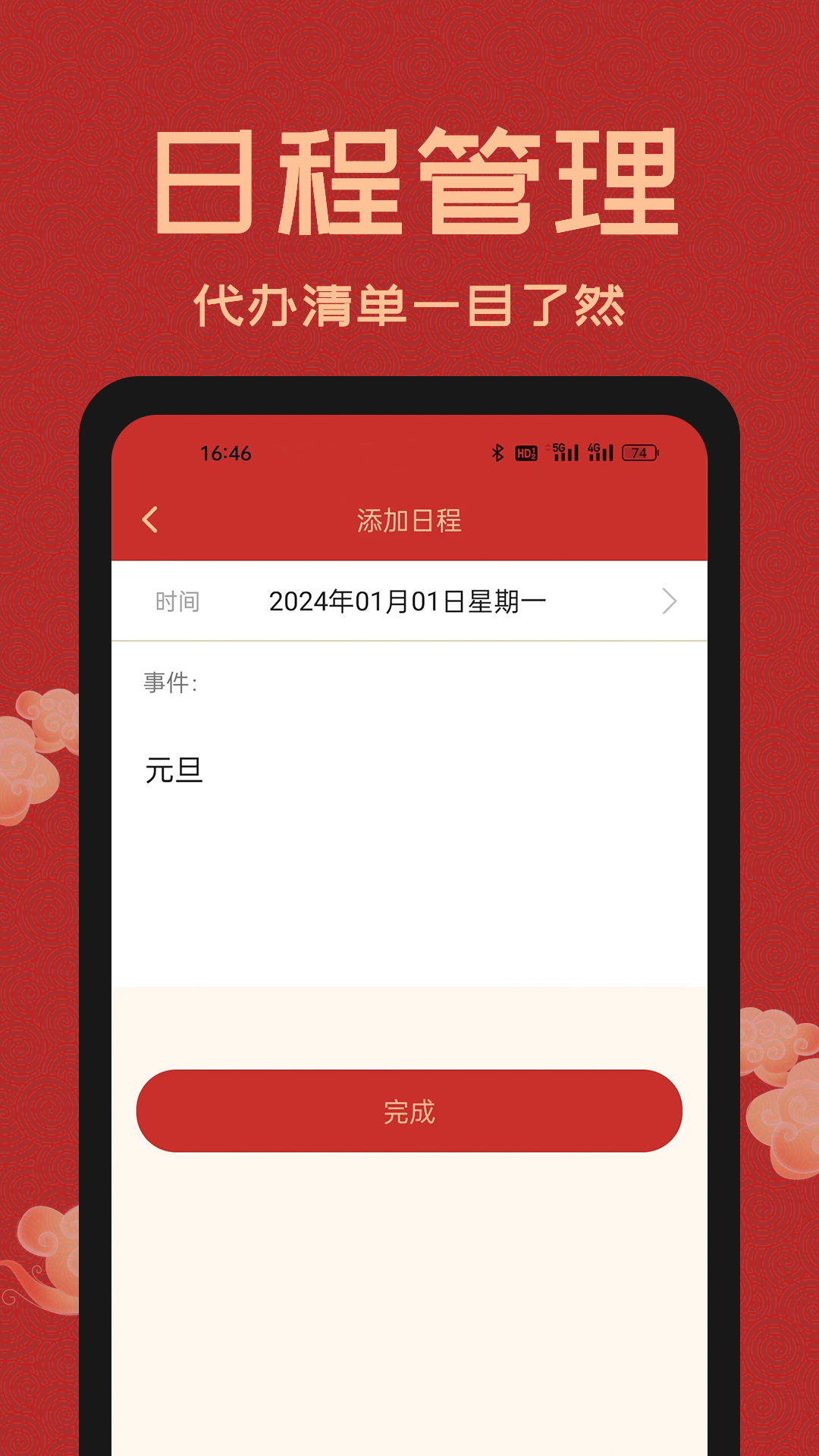 3、日程管理:贴心日程管家,您可以自定义纪念日,生日,计算倒数日,添加待办事项,任务清单,设定提醒闹钟与闹铃铃声,不错过每一件重要的小事与每一个有意义的日子