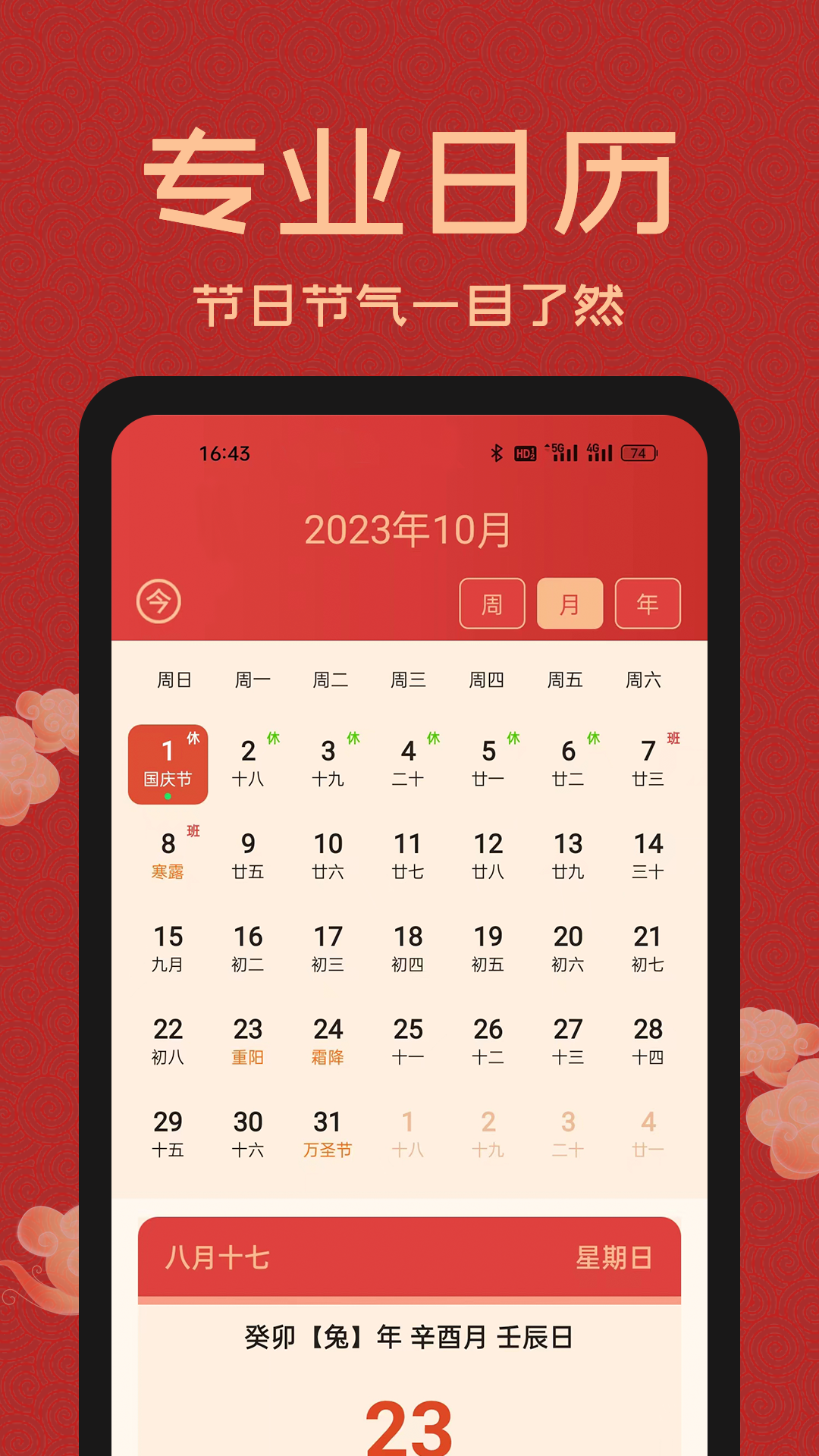 中国万年历,功能全面的多用万年历,农历,日历,黄历APP;