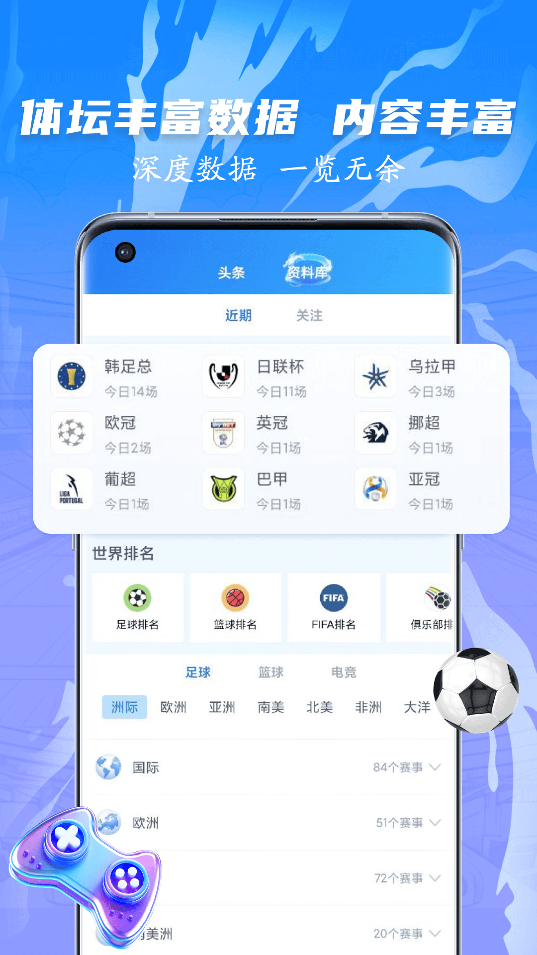 1.赛事频道:提供足球/篮球当期热门进行中的赛事数据查看功能,并提供历史赛事的记录,用户互动热线,为广大体育爱好者提供赛程的良好体验。