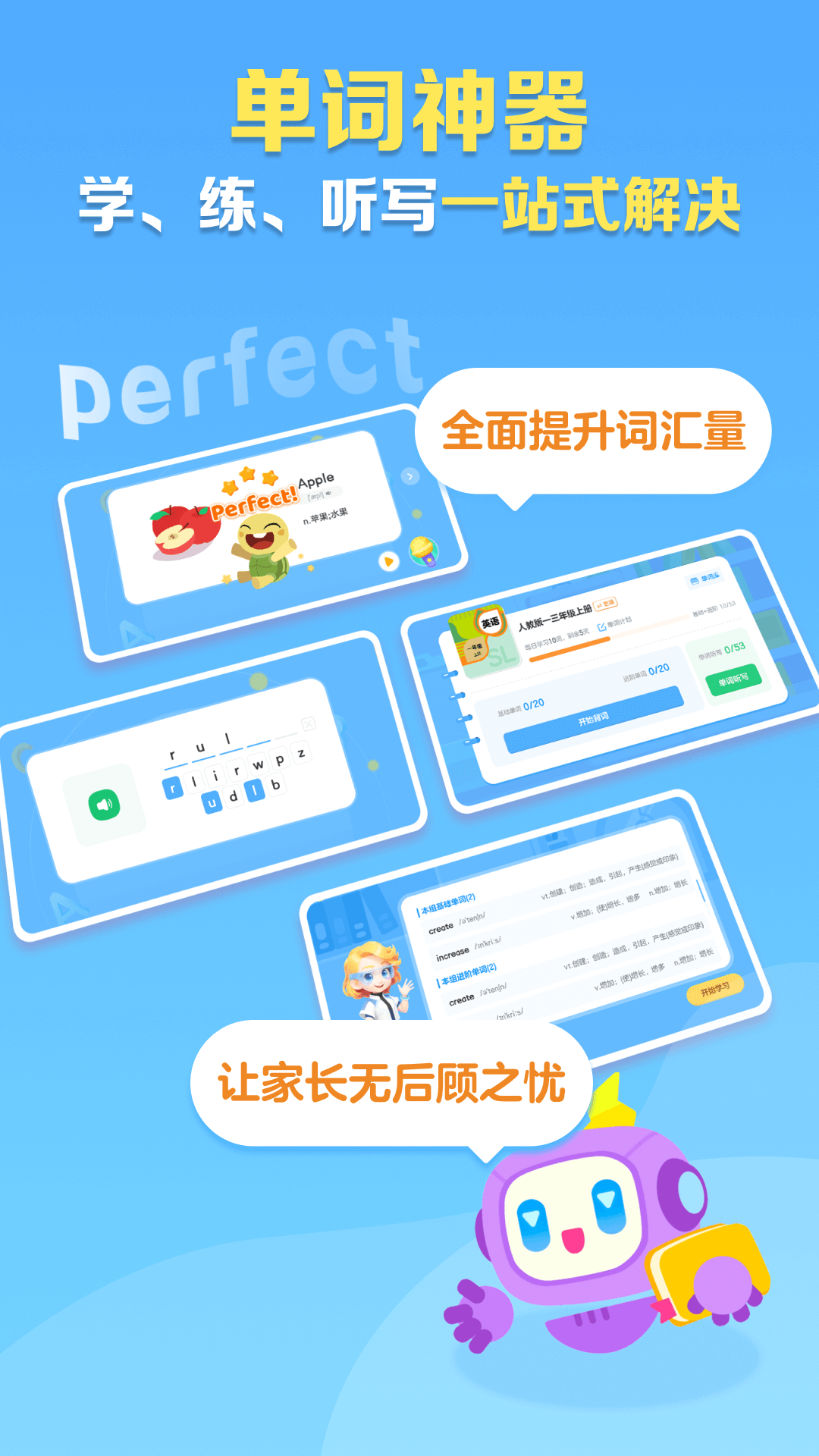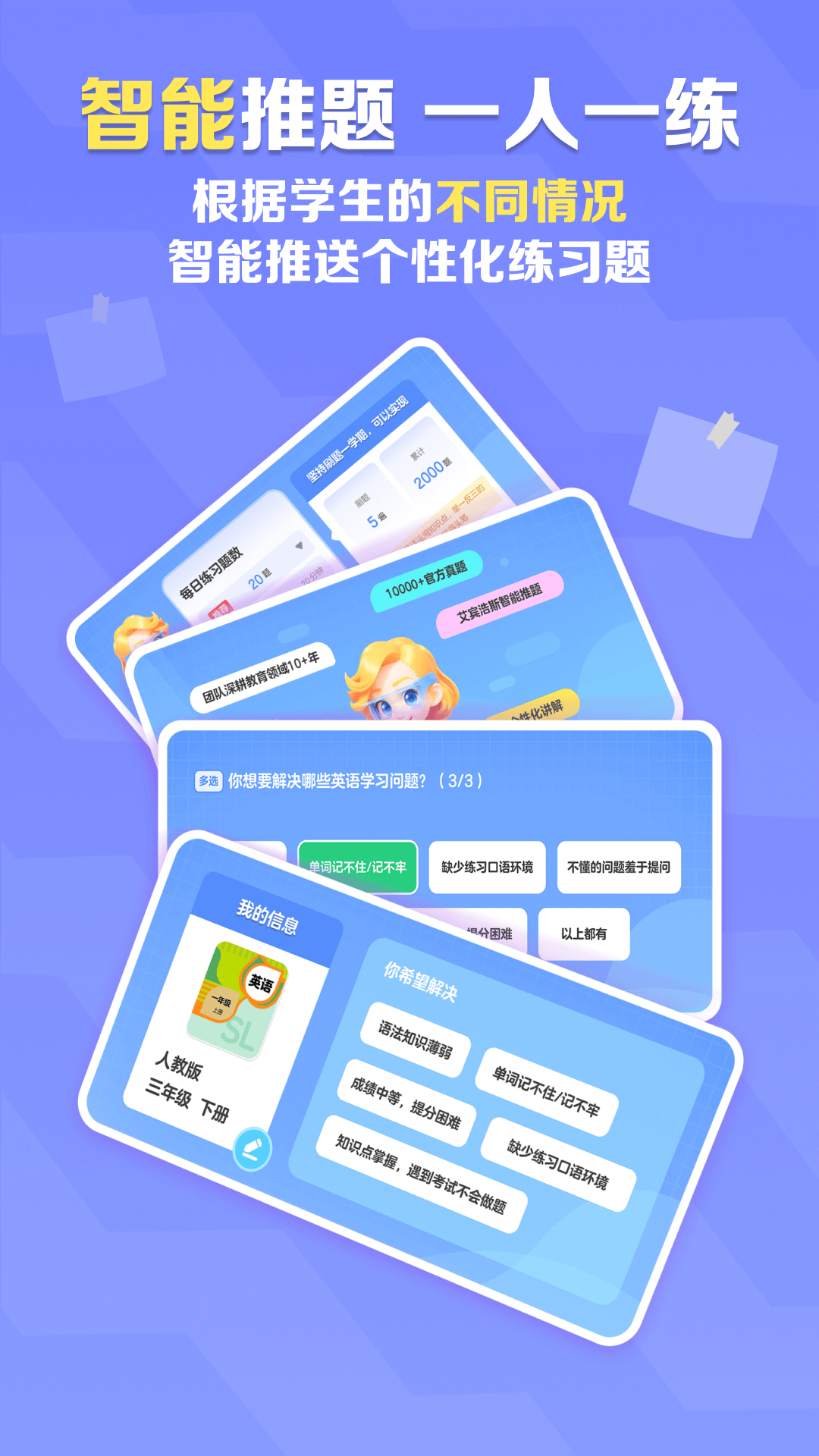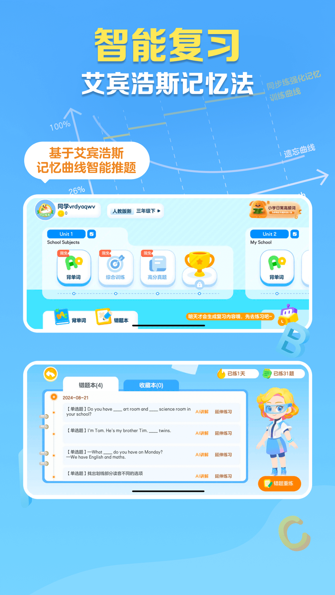 「学练结合」:知识点讲解、单词练习、知识点练习、刷真题、练错题、校内高分必备约6W道练习题,以学代练,不吃大锅饭!针对每个孩子做个性化推荐;