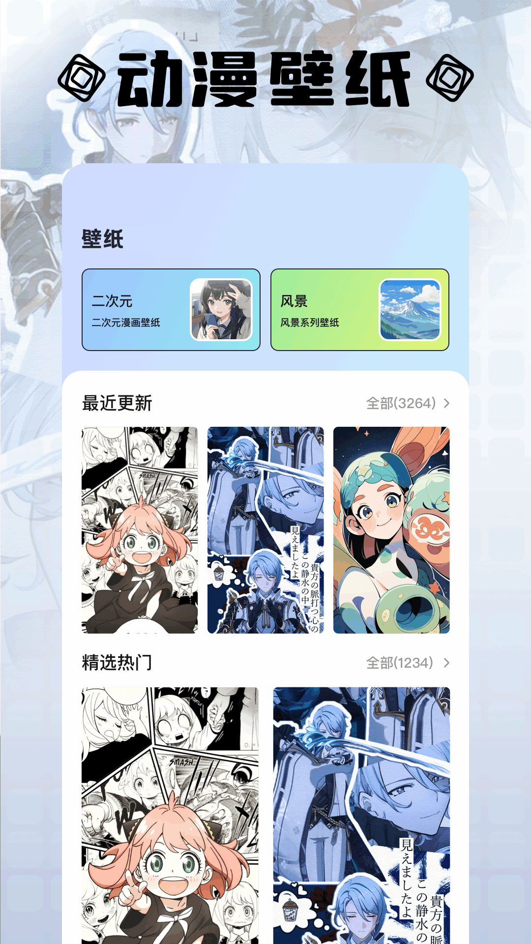 在这个应用里,动漫壁纸板块极具特色,它涵盖多种类型的动漫壁纸,你可以随心所欲地进行切换,轻松让你的设备屏幕充满喜爱的动漫元素。