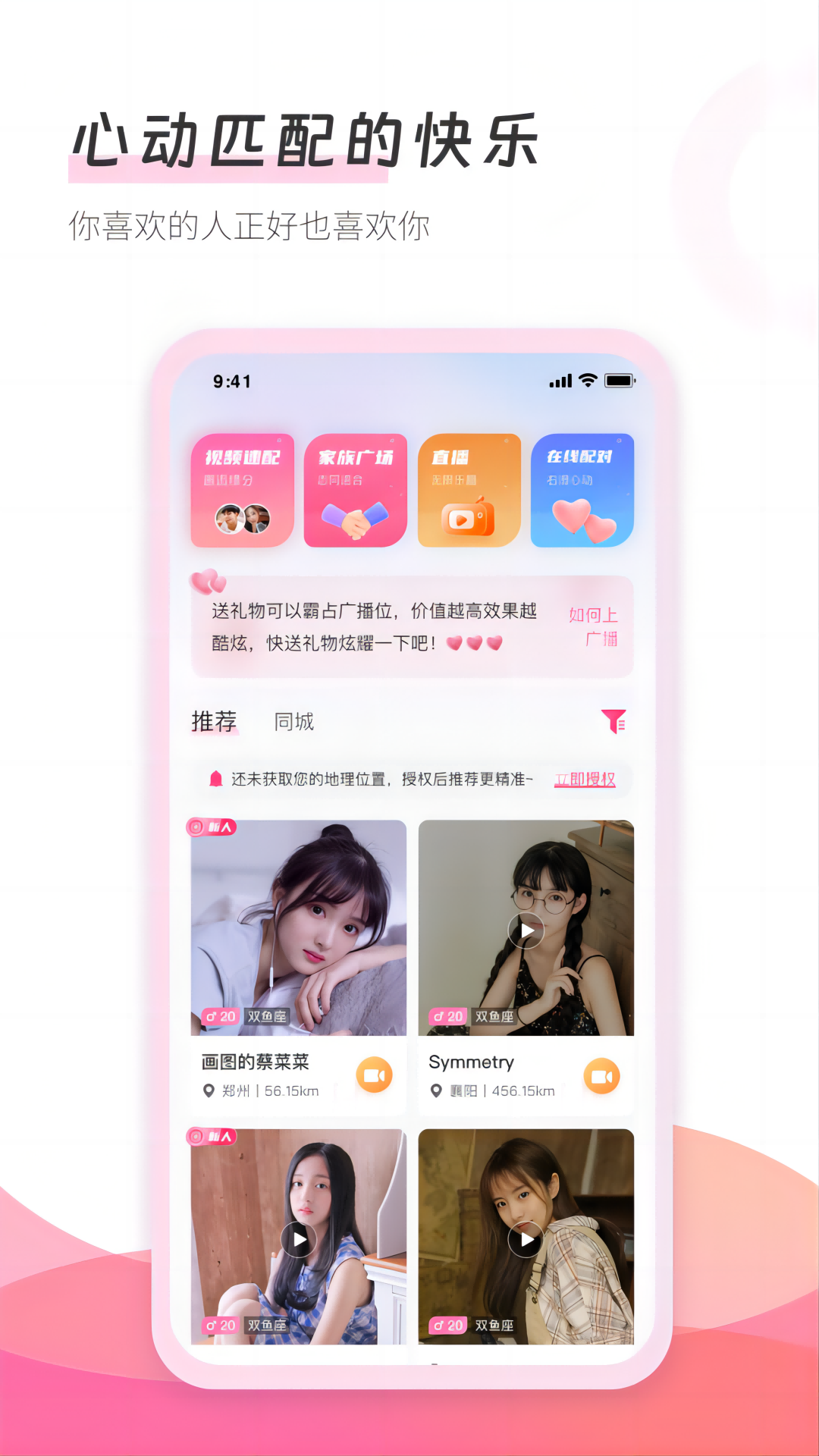 同城交友:快速搜索并匹配附近好友,开启与他/她的美妙邂逅。