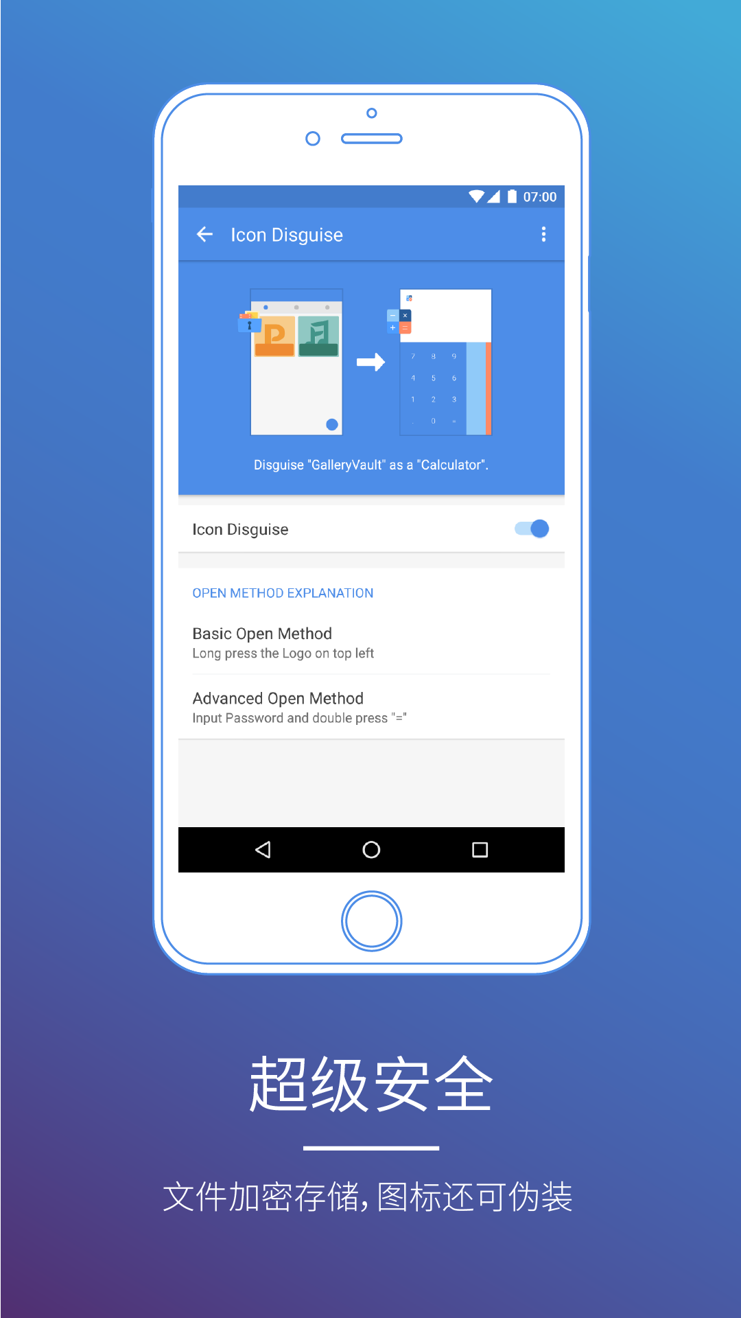 它是一款超级强大的隐私保护应用,可以巧妙而隐蔽地保护您不想被他人看到的照片、视频以及其他各类文件。