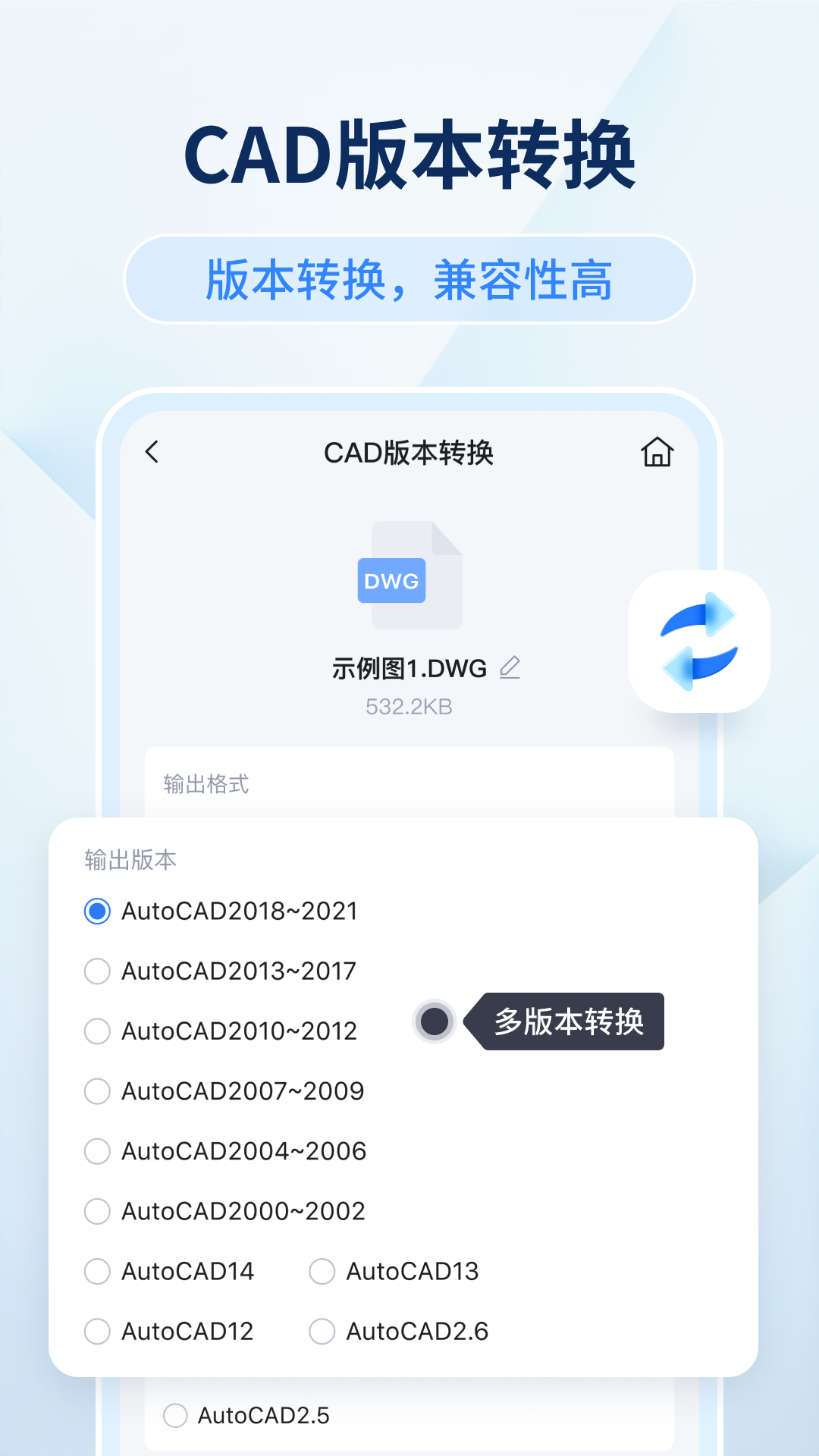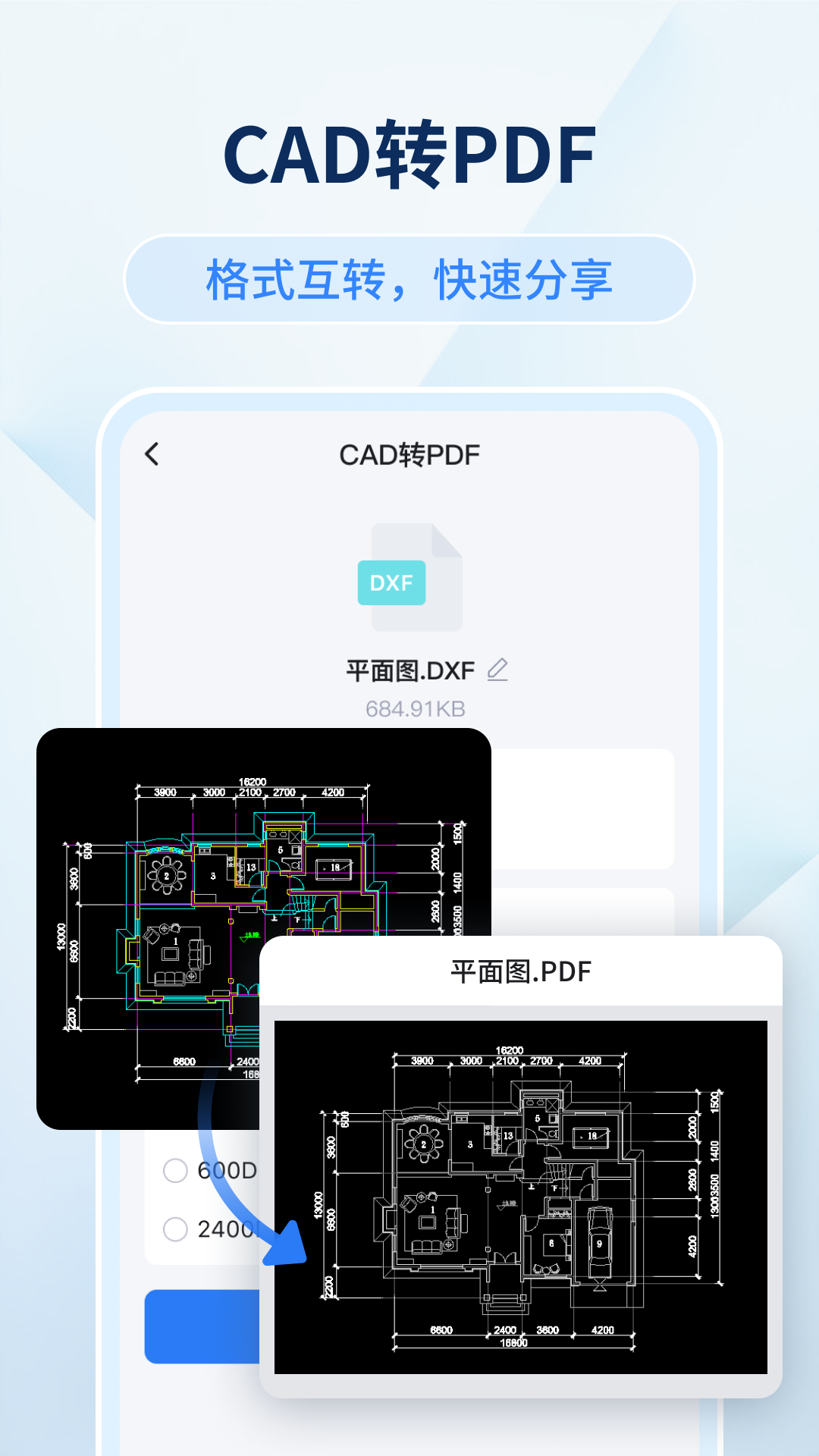 支持PDF转CAD、CAD转PDF、CAD转图片、CAD版本转换等多种转换模式;