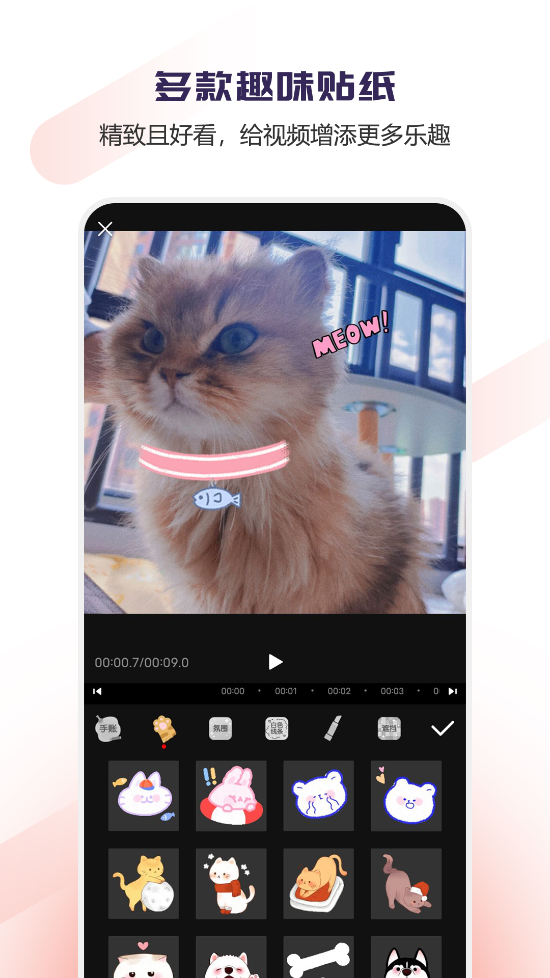 - **文字贴纸**:添加字幕和贴纸,增强视频的表现力。