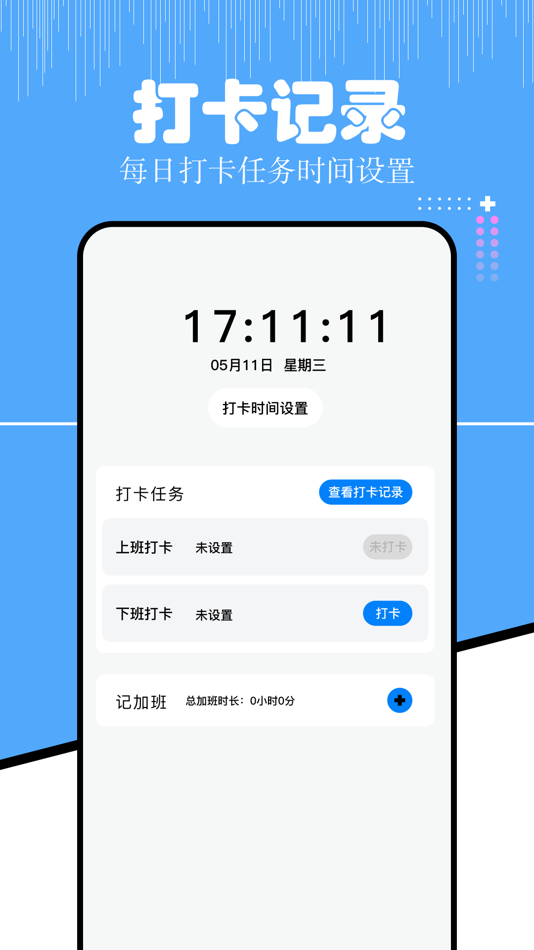 这是一款超贴心的用于打卡和记录工时的工具类应用哦!