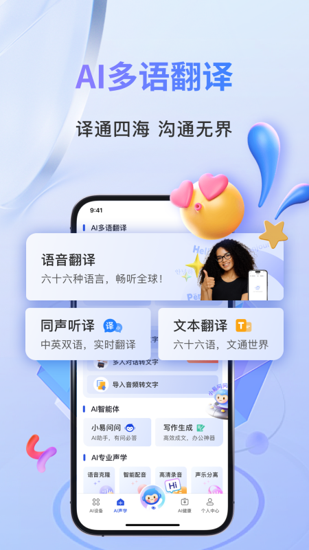 欢迎使用声智App,它是一款融合实时翻译与智能设备管理功能的应用。
