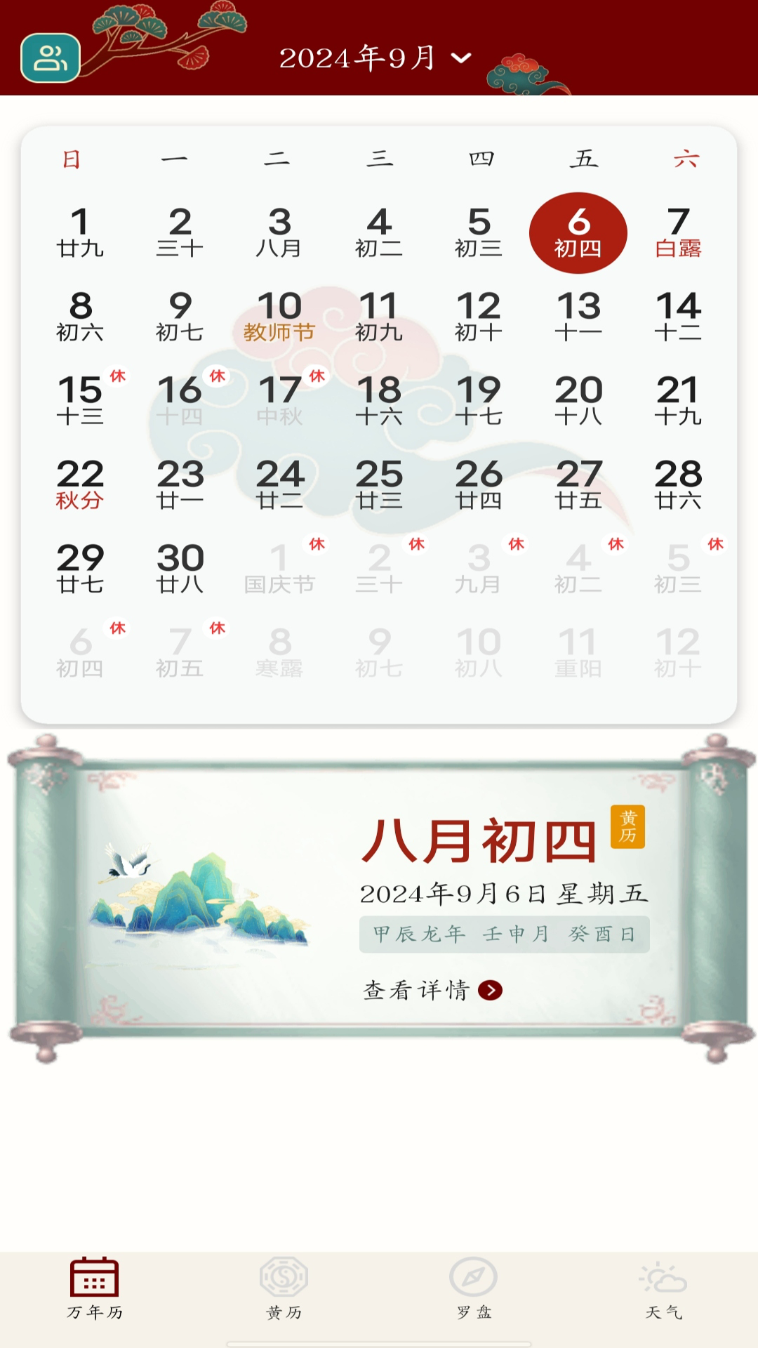 这里有着非常详尽的日历相关信息,像公历、农历的日期,还有各个节气以及节假日等内容,一应俱全。