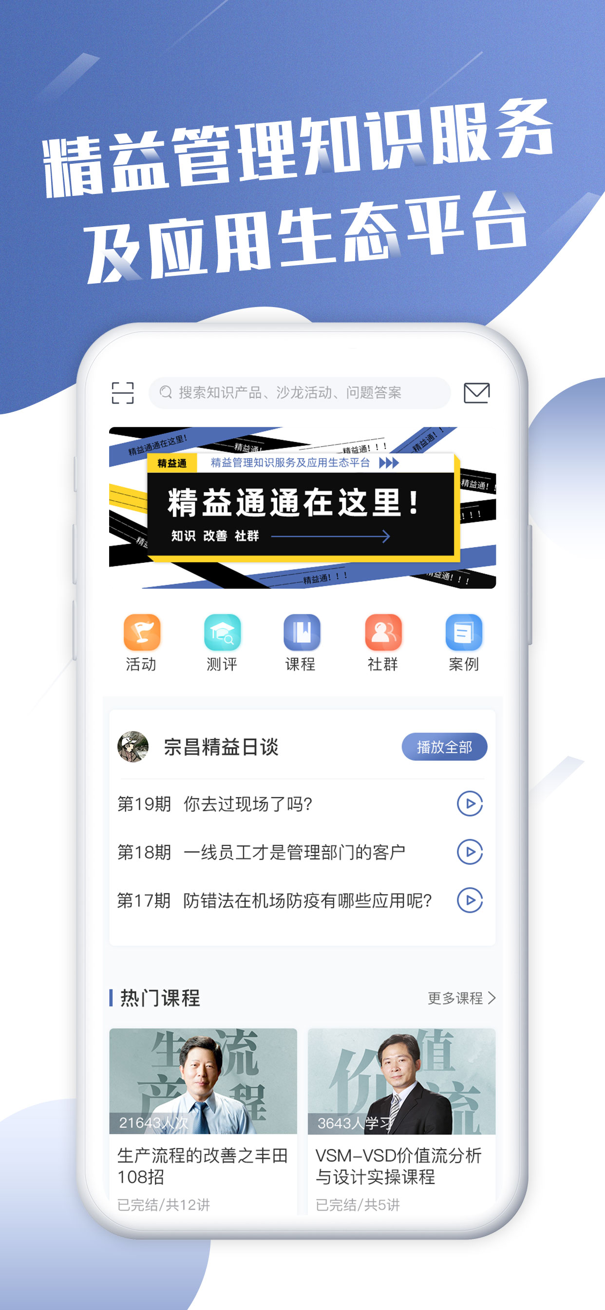 在知识服务板块,为用户提供了丰富多样的专业精益知识学习途径。用户能够通过观看视频课程、收听音频、阅读文章、观看直播、参与线上答疑以及进行能力测评等全方位的方式来学习精益知识。