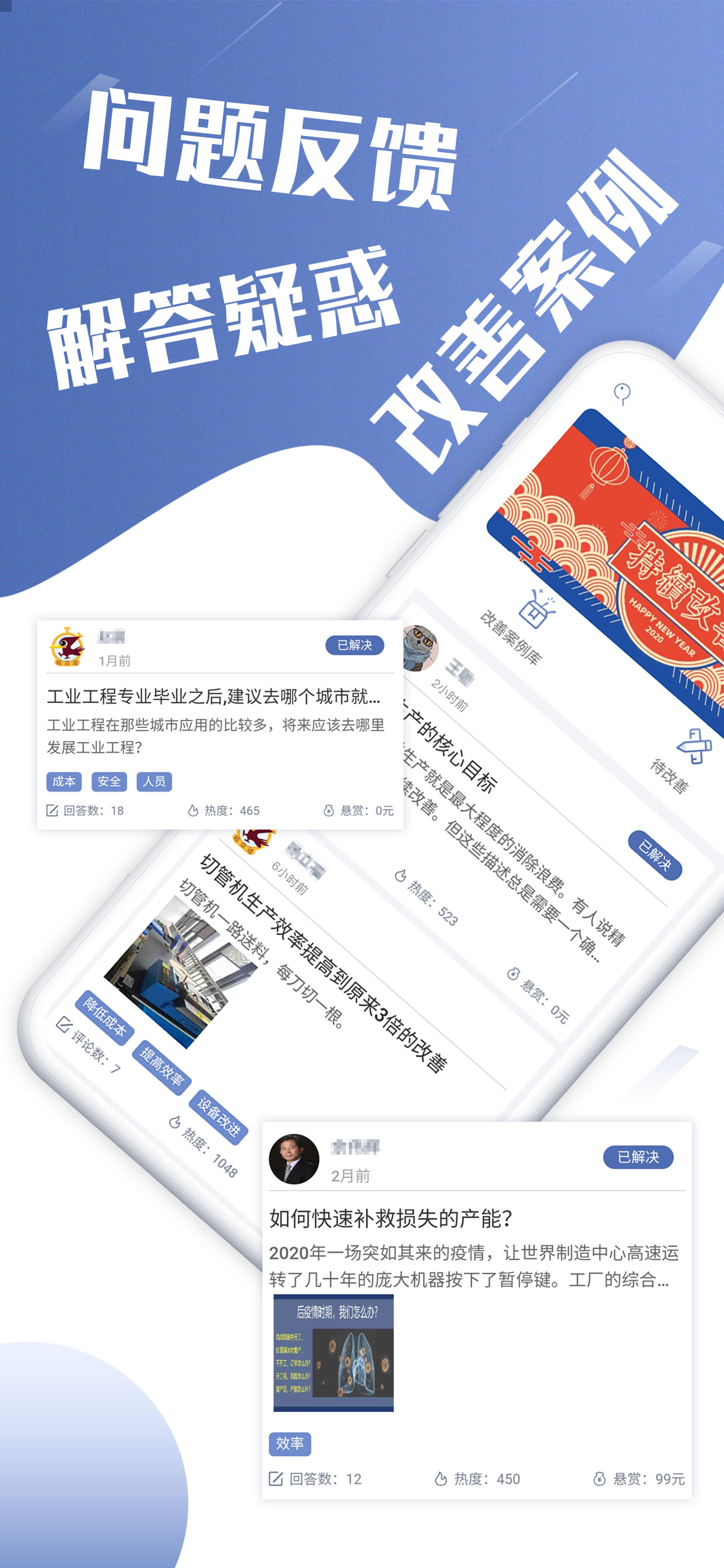改善服务板块的作用在于确保用户将所学知识落地实践。对于个人用户而言,它是一个开放的线上改善答疑平台;而企业用户则可将其作为企业内部的改善管理工具平台,借助该平台能够实现问题的快速响应、改善提案的数据统计以及企业改善数据的云存储等功能。
