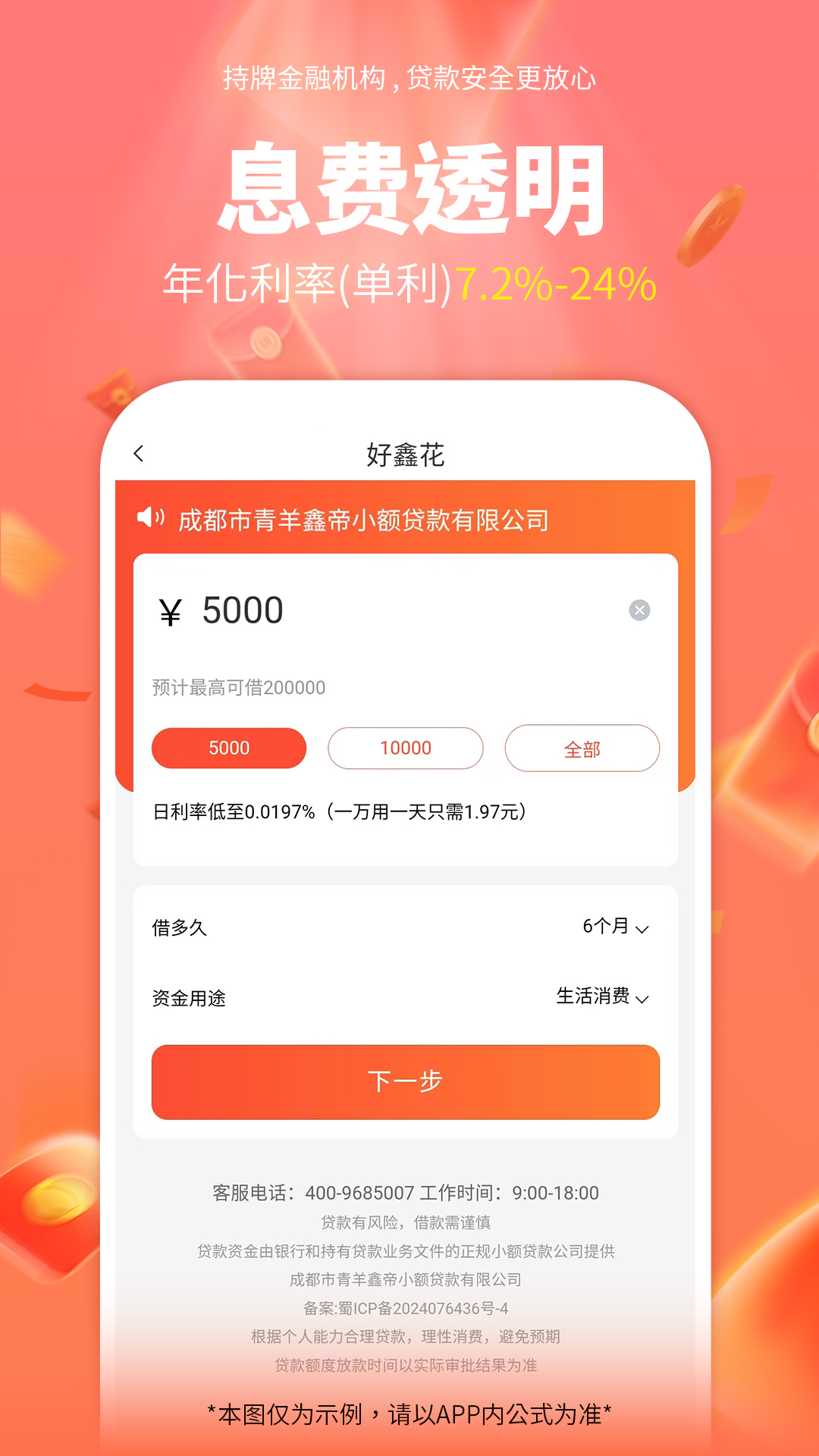 【息费透明】年化综合息费率(单利)7.2%起(以审核为准)!