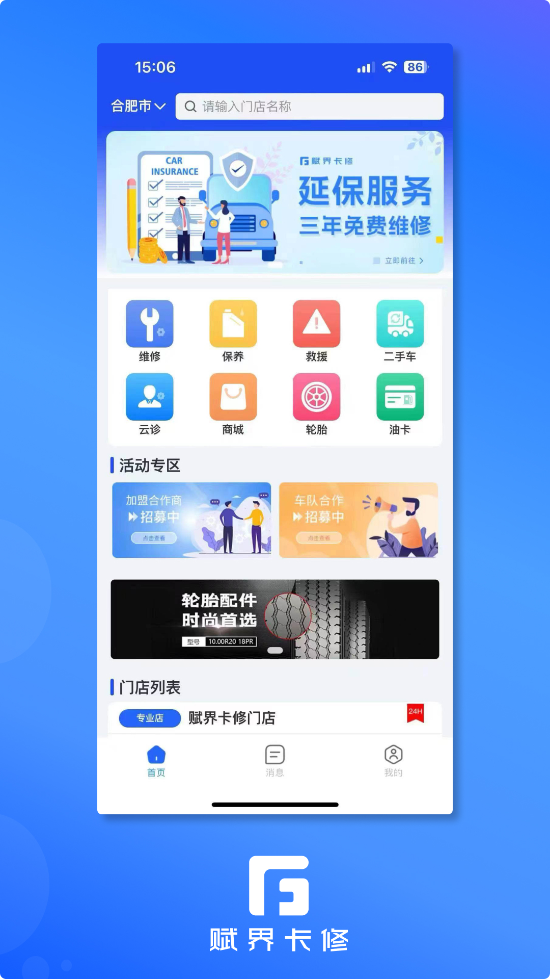 赋界卡修是一款专门面向卡车司机,提供精准维修与保养业务的移动应用。