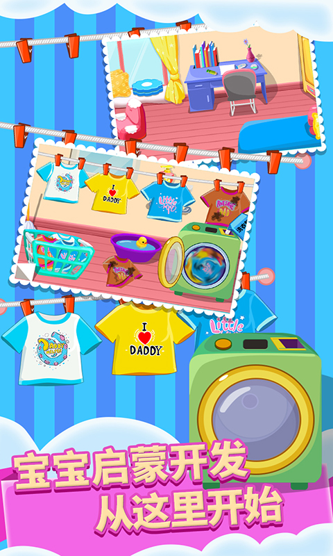 儿童宝宝认知是宝宝早教启蒙系列产品,一款宝宝早教app,专门为宝宝设计。游戏中宝宝将会像大人一样在家里收拾整理房间,体验各种有趣的日常生活操作,包括洗衣服,整理垃圾,收拾桌子,摆放衣服等等!各种新颖的玩法,精美的场景,促进宝宝掌握日常的生活本领,让您的宝宝更聪明。轻松教育宝宝学会做家务,替爸爸妈妈分担家务哦。增强宝宝的互动性,锻炼宝宝的逻辑能力。有利于儿童的智力发育,发展和完善,在娱乐轻松的学习中,促进宝宝成长,让您的宝宝赢在起跑线上!