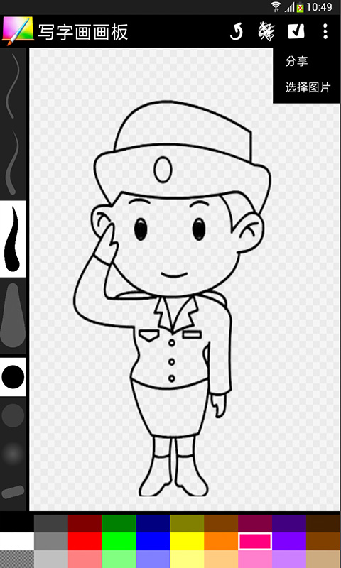 它还有一个很有趣的功能,就是可以对手机sd存储卡里的图片进行涂鸦创作。当你完成涂鸦之后呢,既可以把自己的杰作保存回存储卡,方便随时查看和使用,也能够利用涂鸦板中的分享功能,把作品分享给好友,让他们也能欣赏到你的创意。