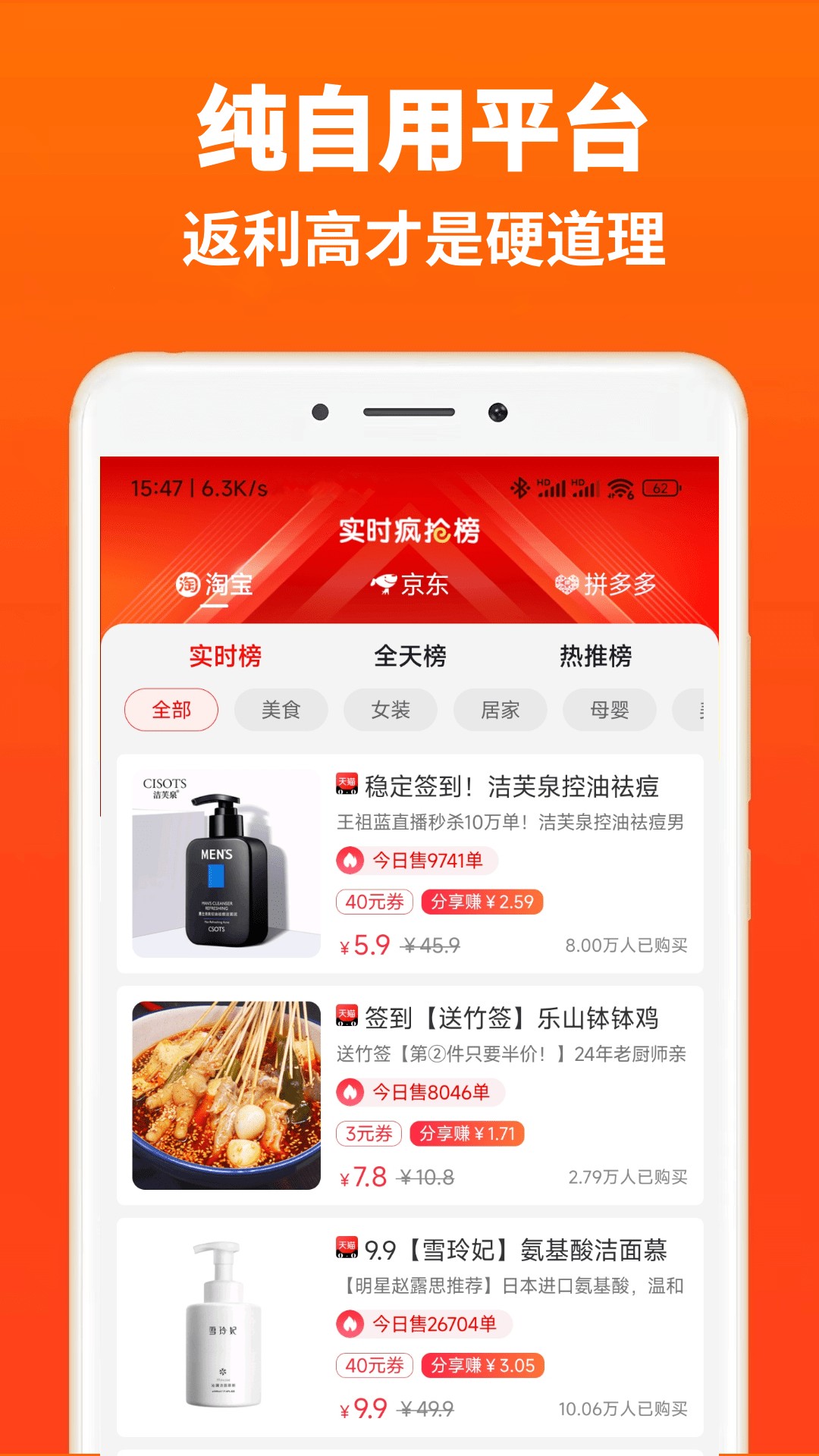 【高额返利】这里是全民共享的高返APP,我们坚决抵制低返和各种套路,在返利额度上,相比大多数同类APP要更高哦。